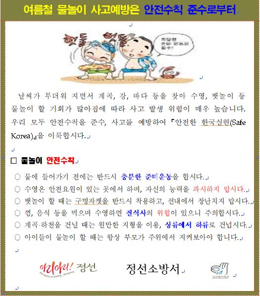| 1272 | 여름철 물놀이사고예방 | 지역소방서 | 2022-08-03 | 682 | |