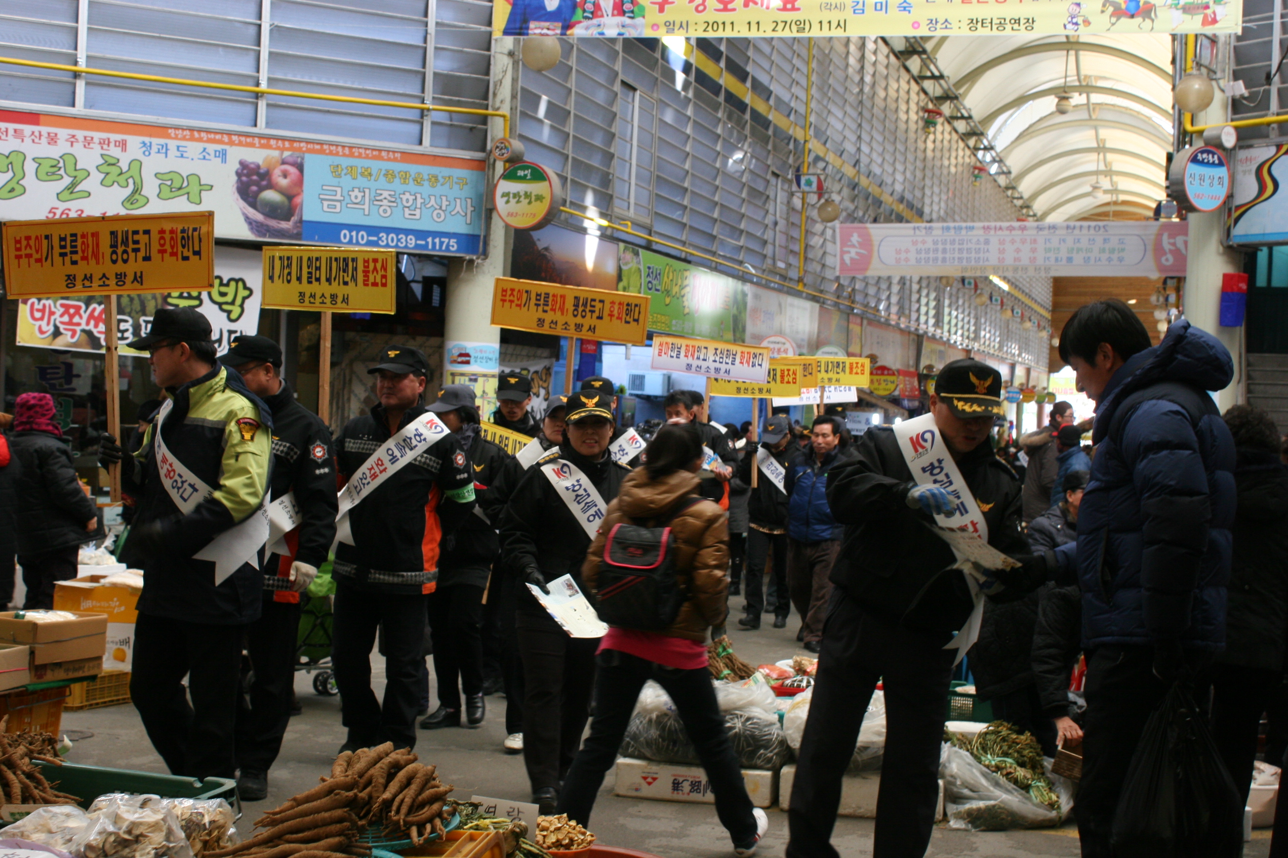 정선소방서(서장 박창진)는 2011.12.27 정선재래시장에서 화재예방캠페인을 실시하였습니다.