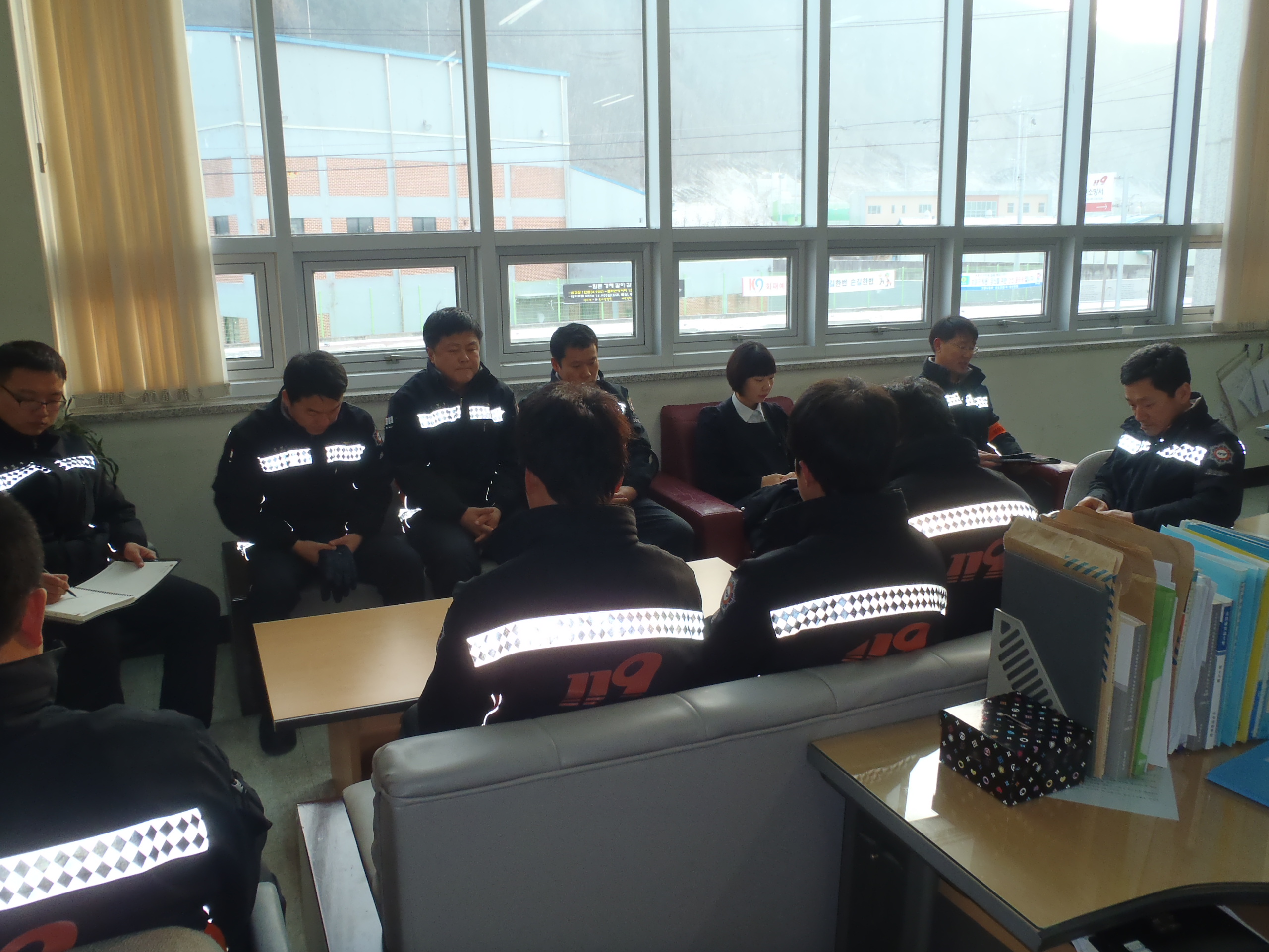 정선소방서(서장 박창진)정선119안전센터에서는 금일 아침 조회를 실시하였고, 동절기 안전사고 예방 및 복무관리에 만전을 기하도록 다짐하였습니다.