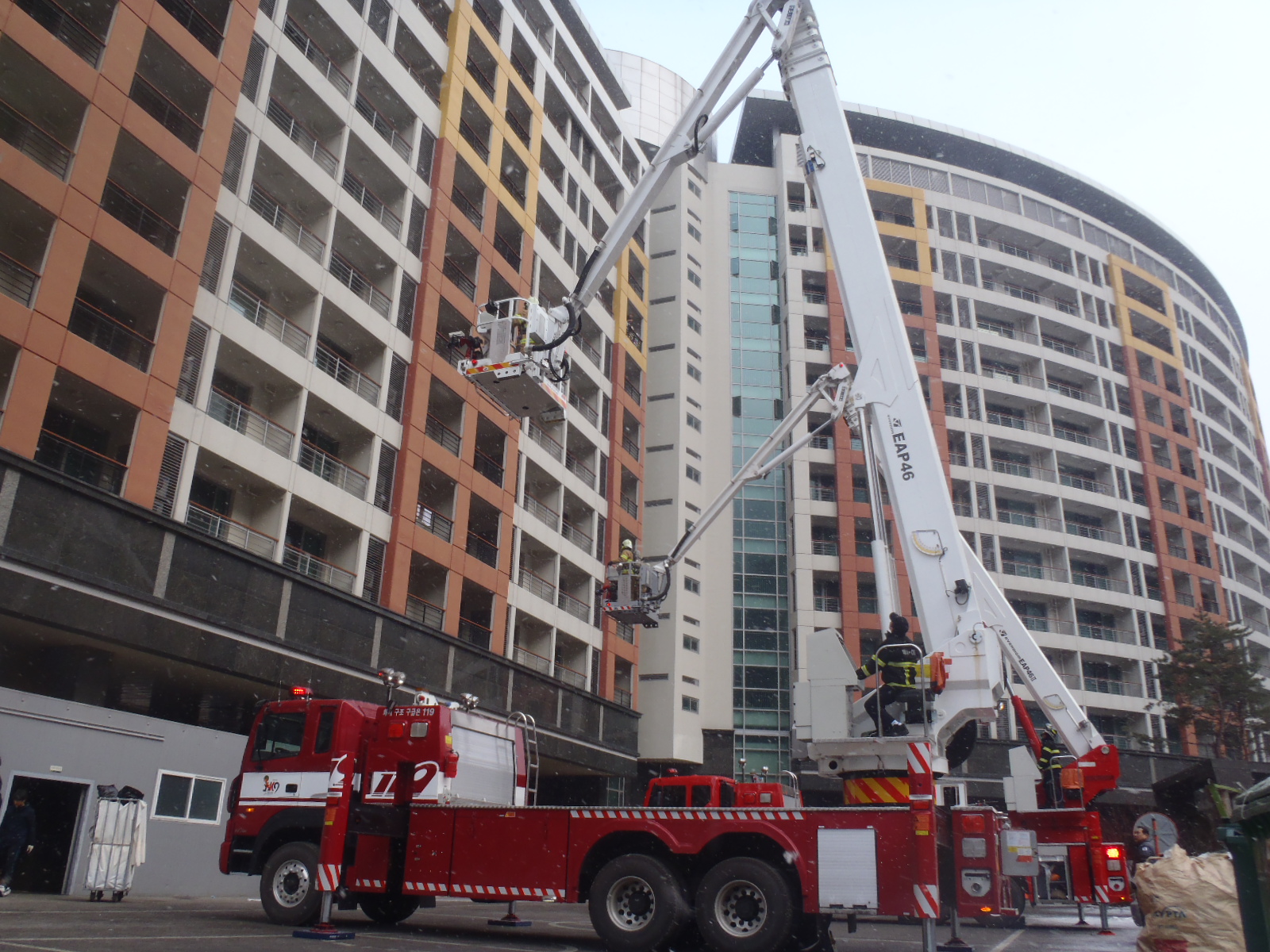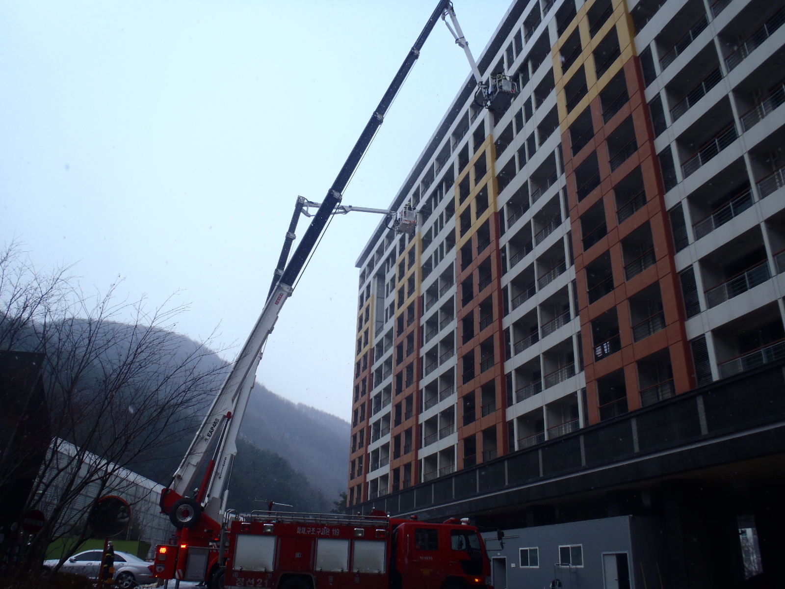 정선소방서(서장 박창진) 1.31(화) 메이힐스콘도 대상으로 고층건물 합동소방훈련을 실시하였습니다. 이번훈련은 광역응원출동과 병행하여 실시 하였으며 고층건물의 진압.인명대피,고가굴절차를 이용한 인명구조에 역점을 두고 실시 하였습니다
