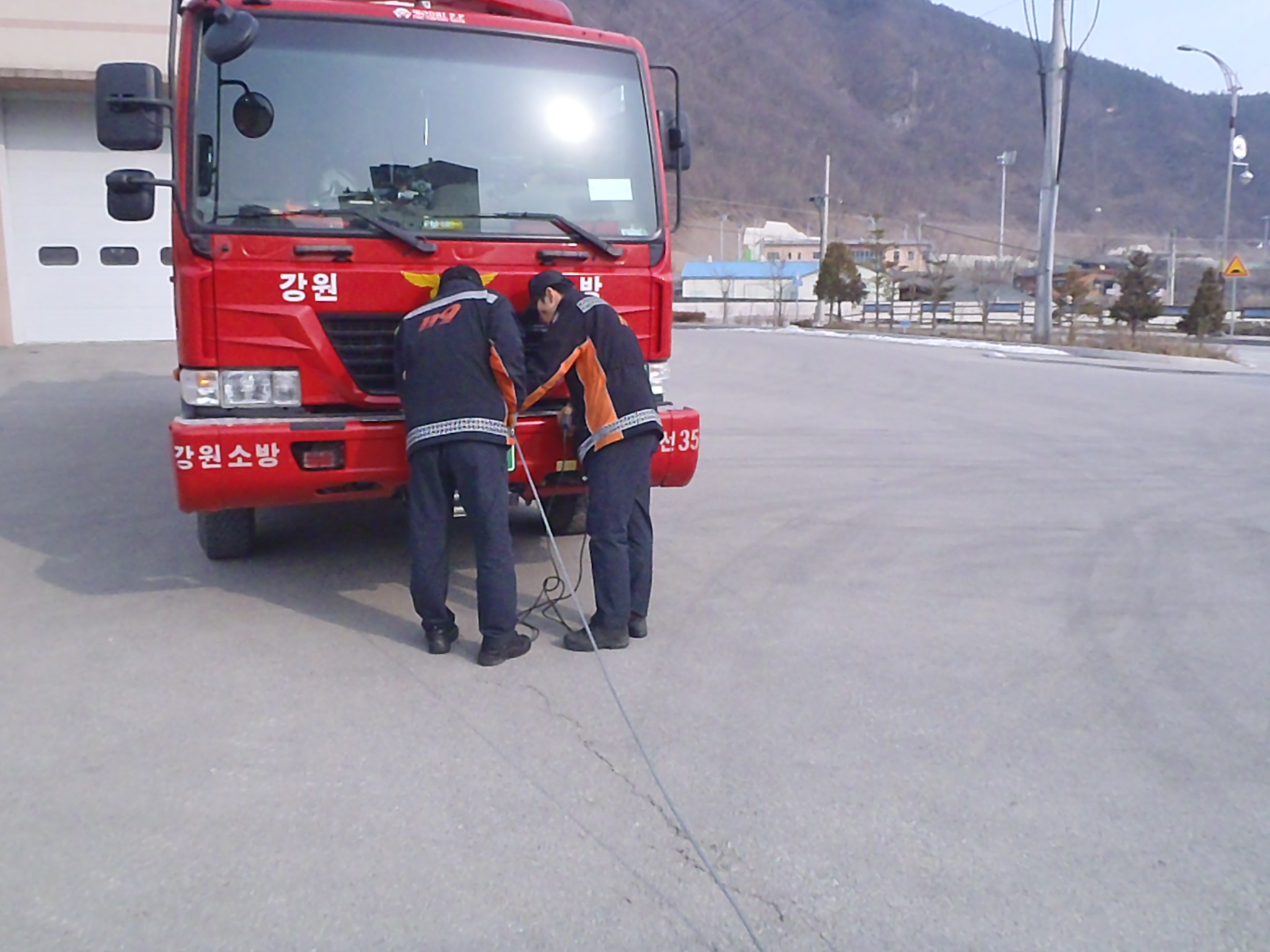 정선소방서(서장 박창진) 119구조대에서는 금일 차량용 윈치 조작 훈련 및 구조공작차 탑 틸팅 후 차량점검을 실시하였습니다.