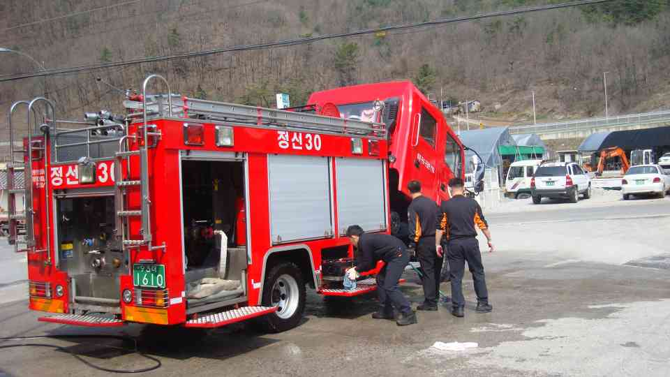 정선소방서(서장 박창진)신동119안전센터에서는 금일 펌프차량점검. 정비 세차및 소방호스세척을 실시하였습니당~!! 항상 깨끗한 차량및 적재물 상태를 유지하여야 겠습니다.