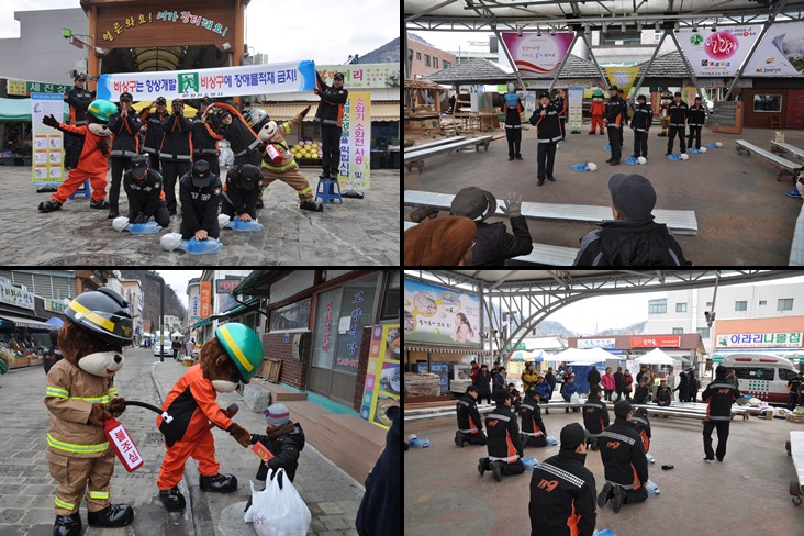정선소방서(서장 주항중)는 12.17(화) 14:00 정선시장을 찾아 안전한 겨울나기 화재예방 캠페인 및 플래시몹 이벤트를 실시하였습니다.