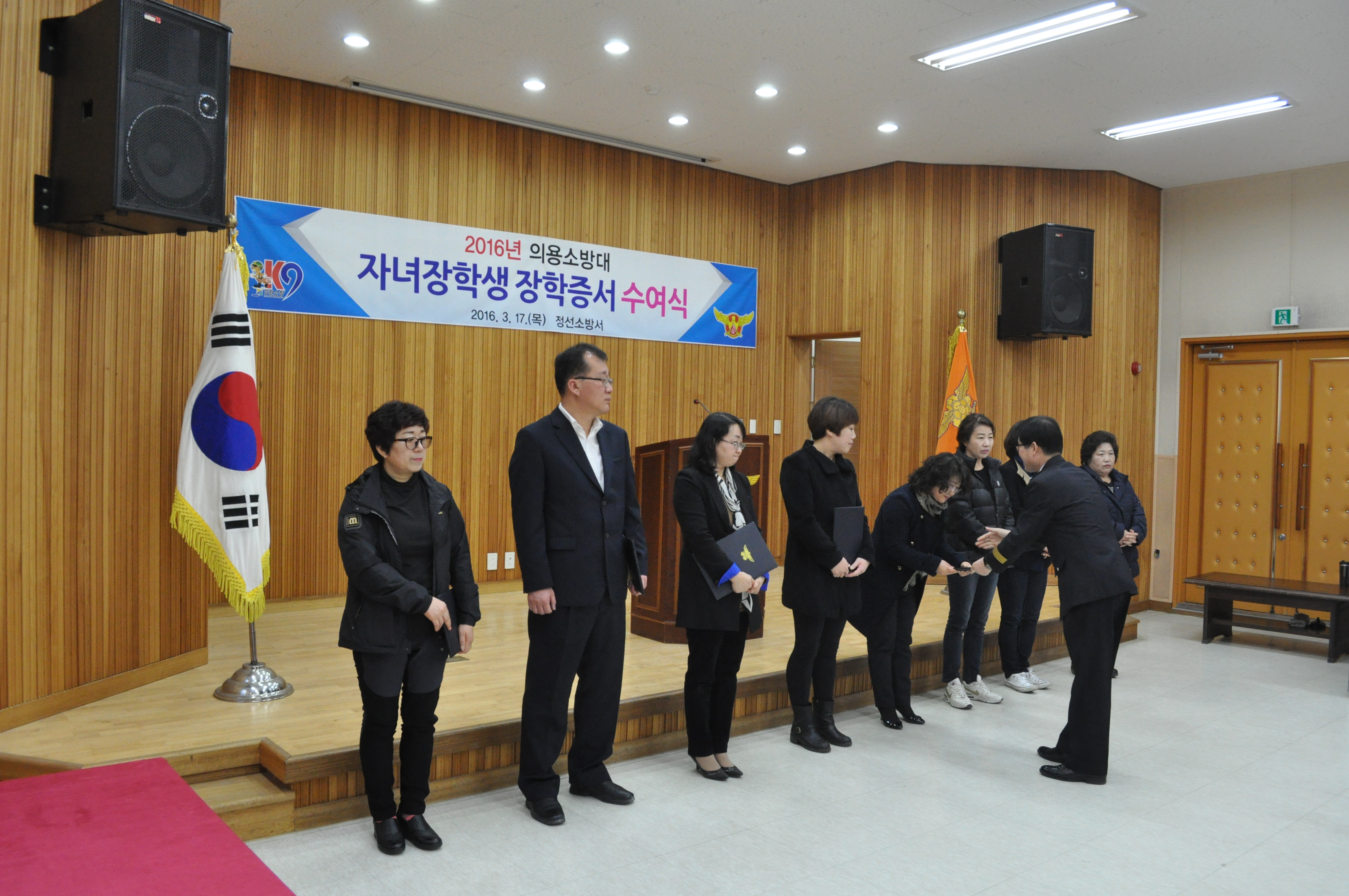 정선소방서(서장 이기중)는 2016. 03. 17 정선소방서 3층 대회의실에서 2016년 의용소방대 자녀장학 장학증서 수여식을 가졌습니다.