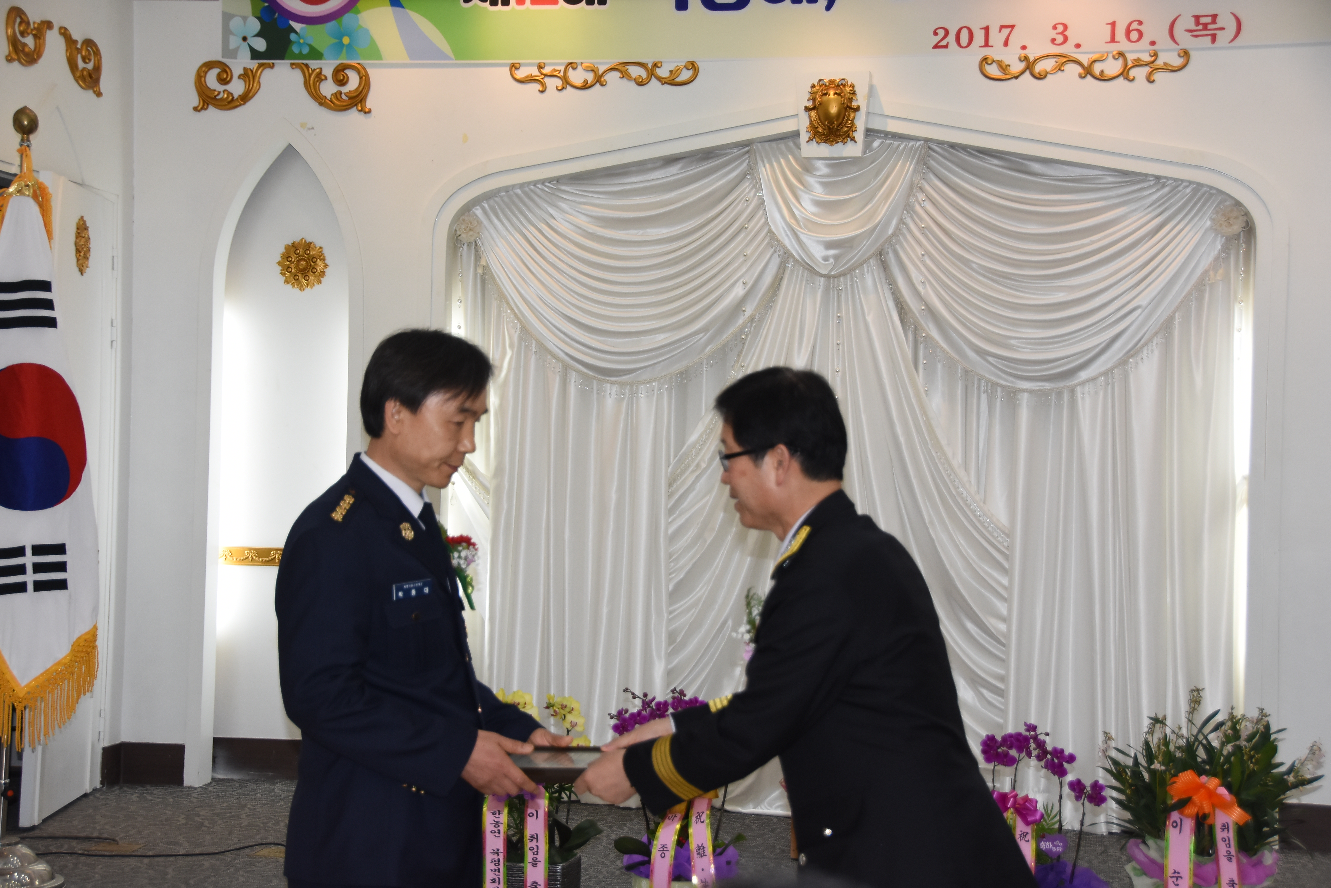 북평의용소방대장 이,취임식을 진행하였습니다.