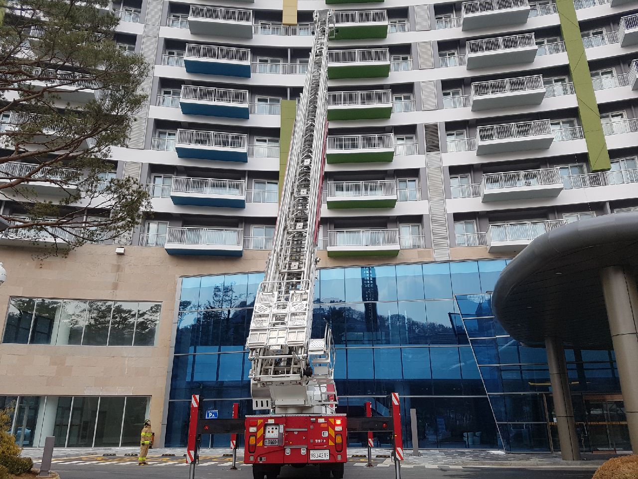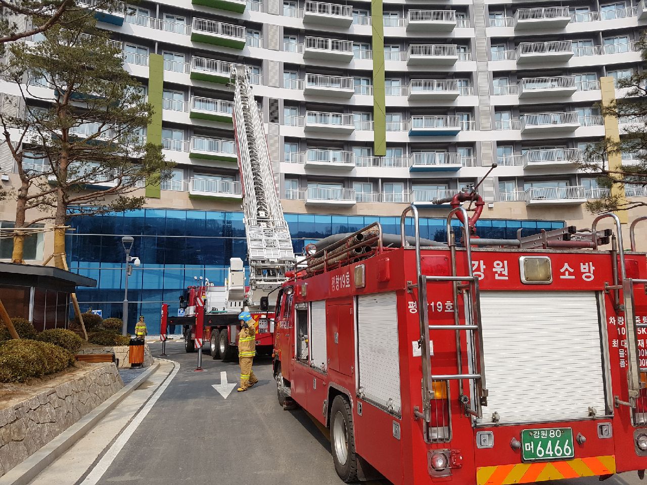 대관령119안전센터는 28일 오후 2시 아이원리조트에서 고가사다리 현지적응훈련을 실시했다.