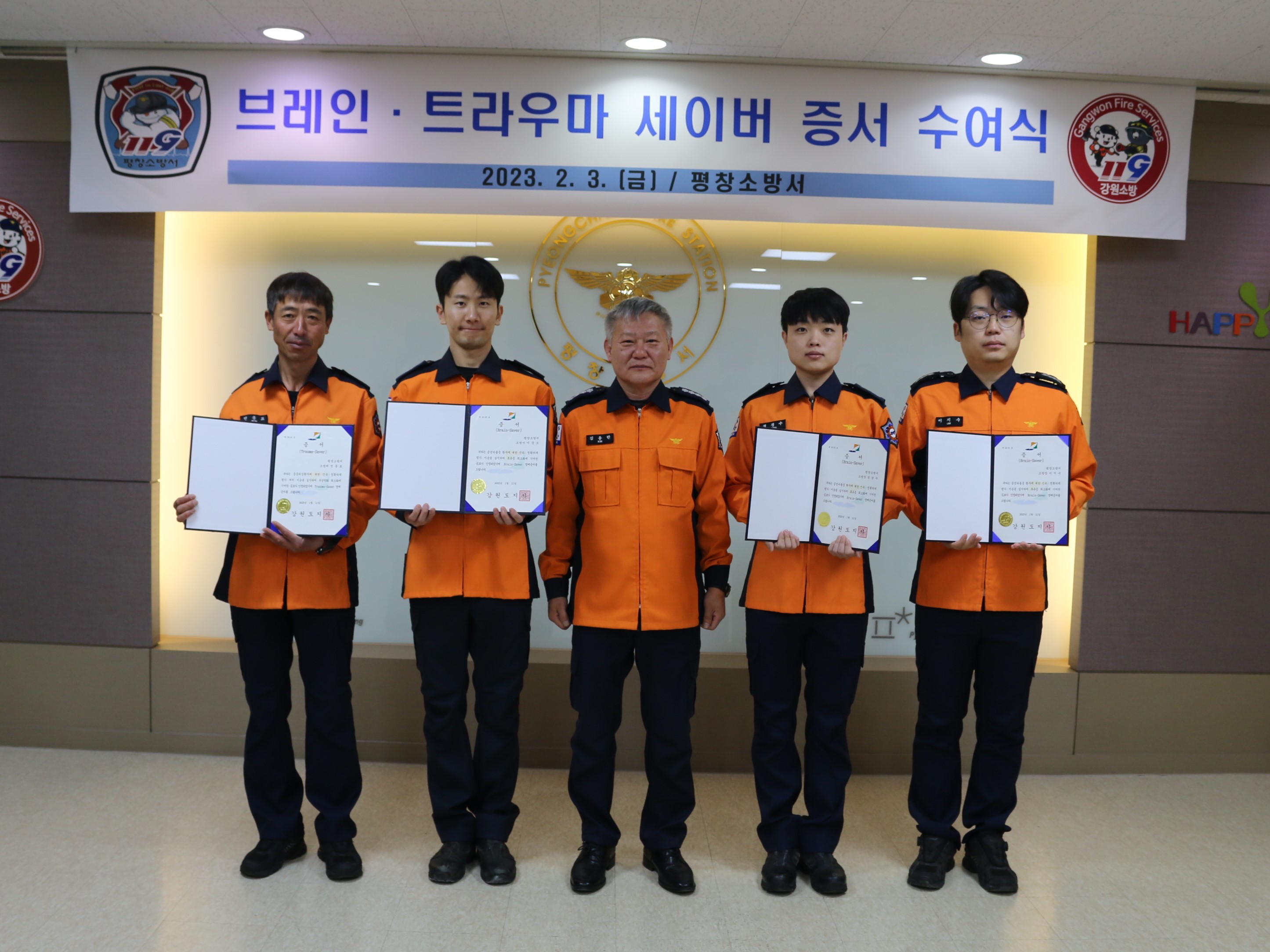 | 1126 | 평창소방서, 생명 구한 구급대원 ‘브레인·트라우마 세이버’수여 | 평창홍보 | 2023-02-03 | 502 | |