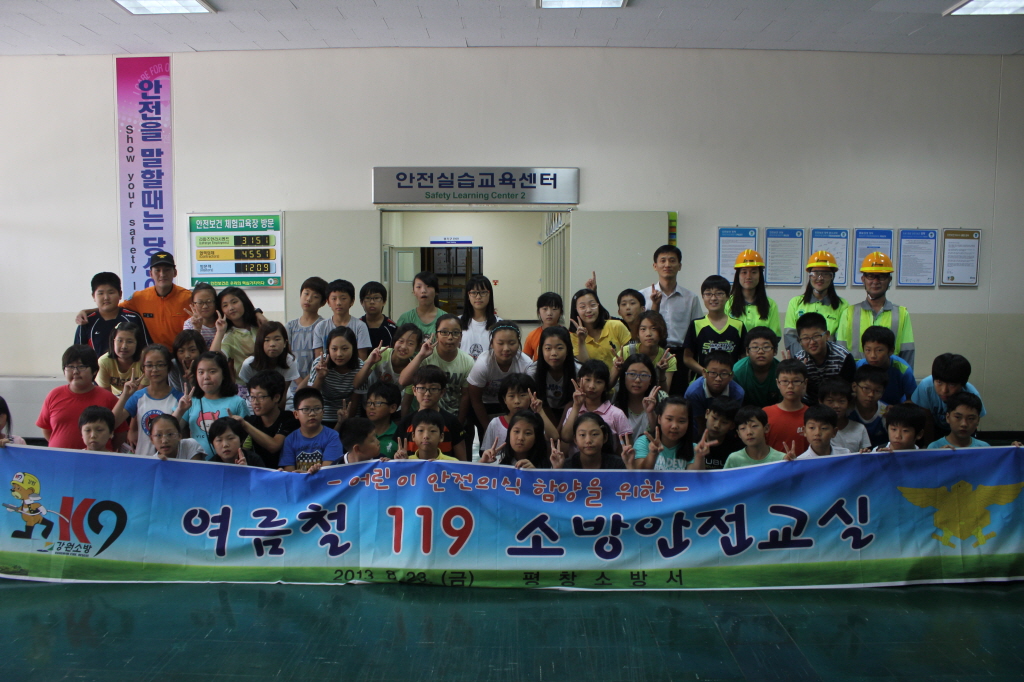 □ 평창소방서(서장 김남숙)는 23일 진부초등학교 5학년 학생 60명을 초청하여 여름철 119 소방안전캠프를 운영했다.이번 여름철 119소방안전캠프는 강릉 옥계 라파즈 한라시멘트 안전실습교육센터를 방문하여 ▲소방안전체험, ▲가정안전체험, ▲응급처치(CPR) 체험 등 일상생활에서 일어날 수 있는 재난에 대해 직접 배우고 체험하는 시간을 가졌다.또한 삼척에 위치한 이사부 공원을 방문, 나무사자상, 새천년 소망의 탑 등 각종관람 시설과 물썰매를 체험하는 시간을 가졌다.