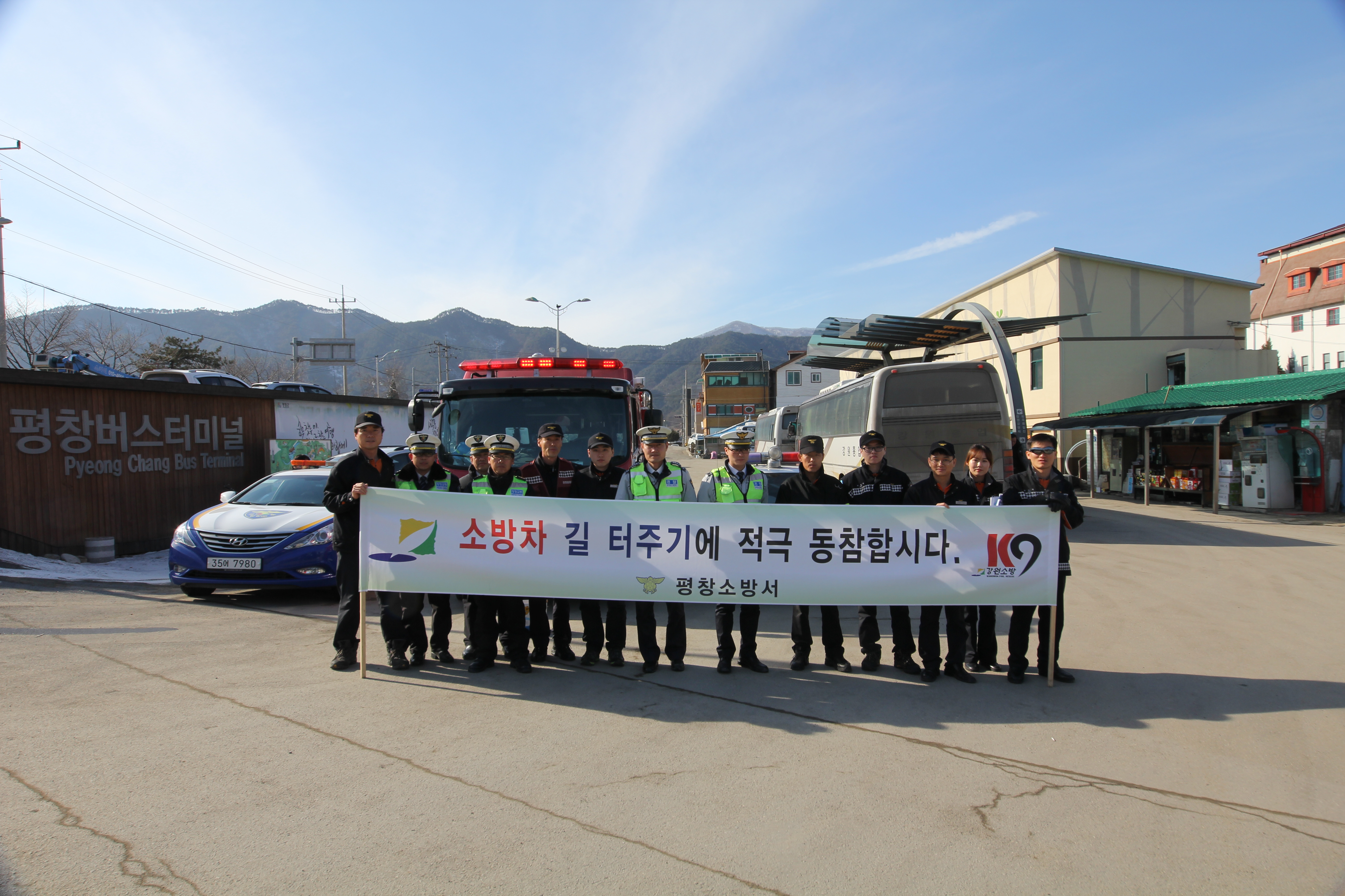 설 연휴 평창올림픽시장 소방차출동로확보 훈련