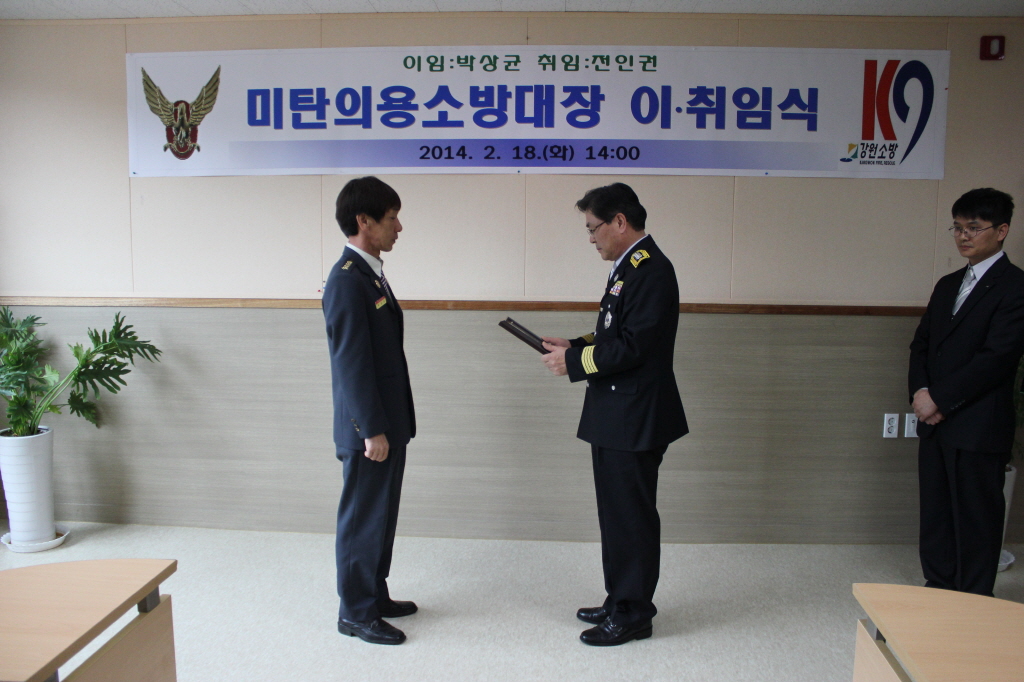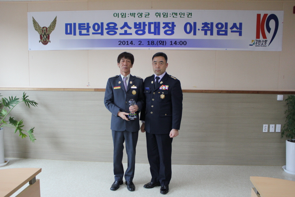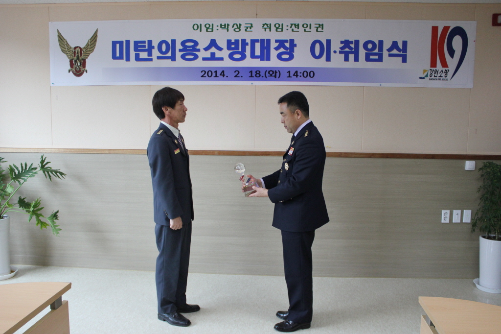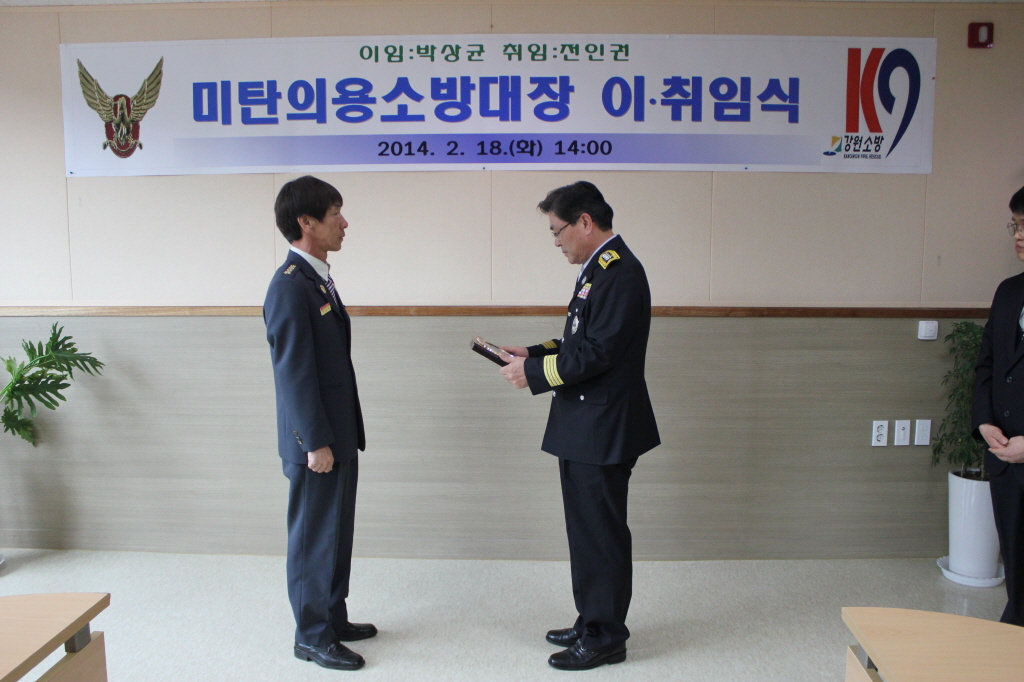□ 평창소방서(서장 김남숙)는 18일 14시 소회의실에서 김남숙 평창소방서장, 민경식 평창의용소방대연합회장, 미탄의용소방대원 및 직원이 참석한 가운데 박상균 전 의용소방대장과 신임 전인권 의용소방대장의 이·취임식을 개최했다