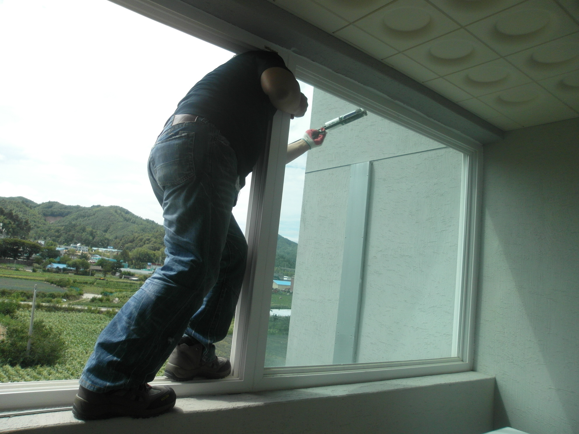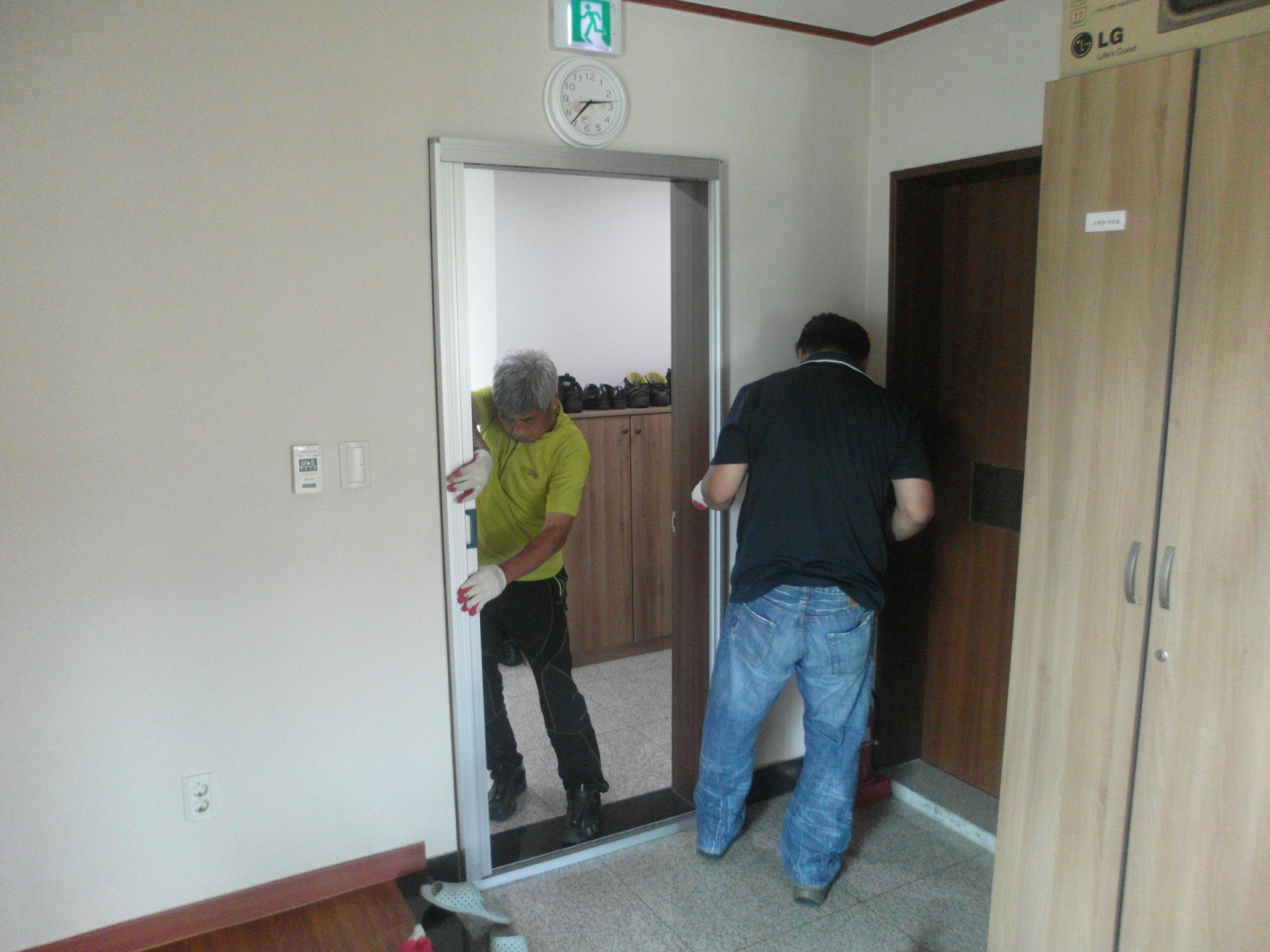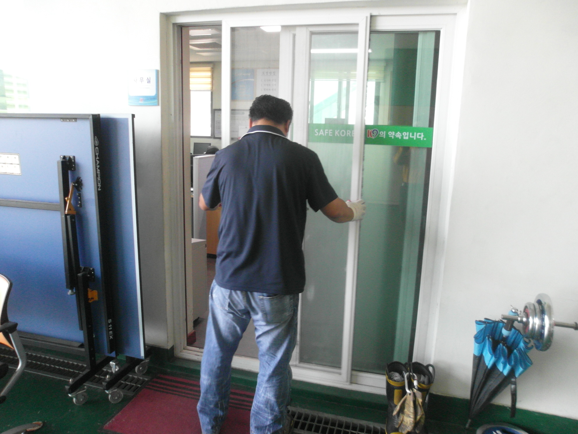 보수내용 2층 직원 숙소 슬라이드 방충망 설치, 2층 누수방지를 위한 실리콘 작업, 1층 사무실 방충망 교체