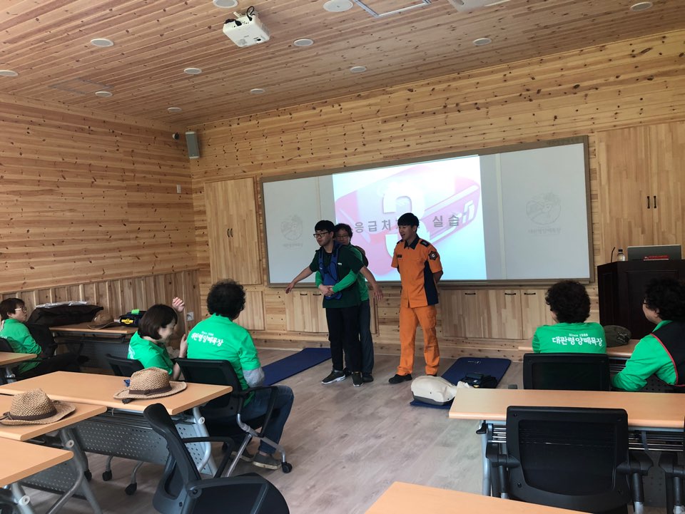 대관령에 위치한 대관령양떼목장 직원들을 대상으로 심폐소생술 및 하임리히법 실시방법과 골절, 벌 쏘임, 온열환자 발생 시 대처방법에 대해 교육을 실시하였습니다^^