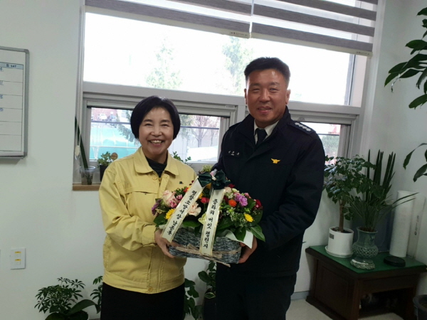 남종훈 평창소방서장은 평창보건의료원을 방문하여 채정희 보건의료원장에게 꽃바구니를 전달하였다.