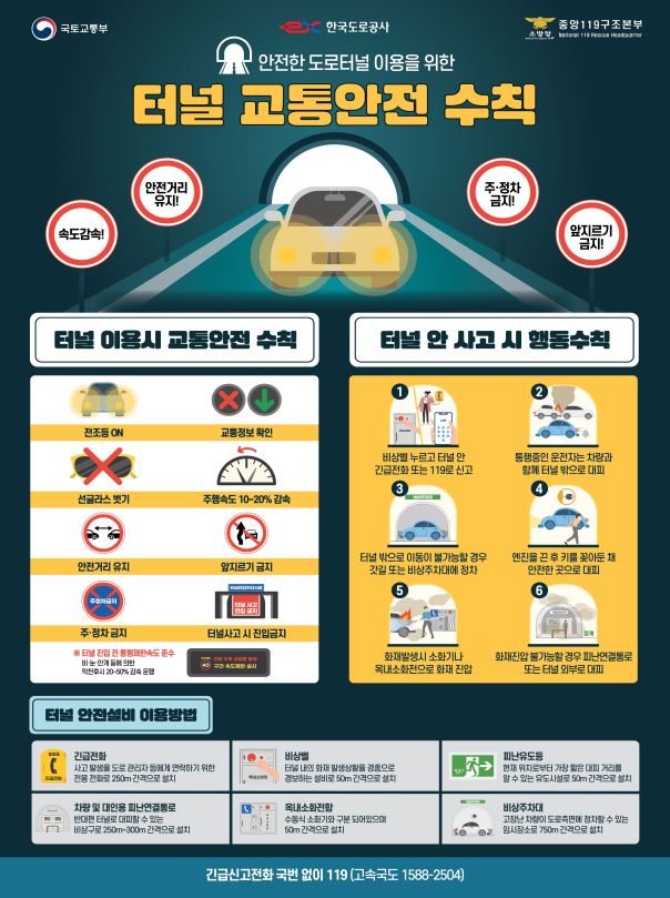‘터널 내 교통안전 캠페인’에 따라 터널 교통안전수칙을 홍보한다고 밝혔다.