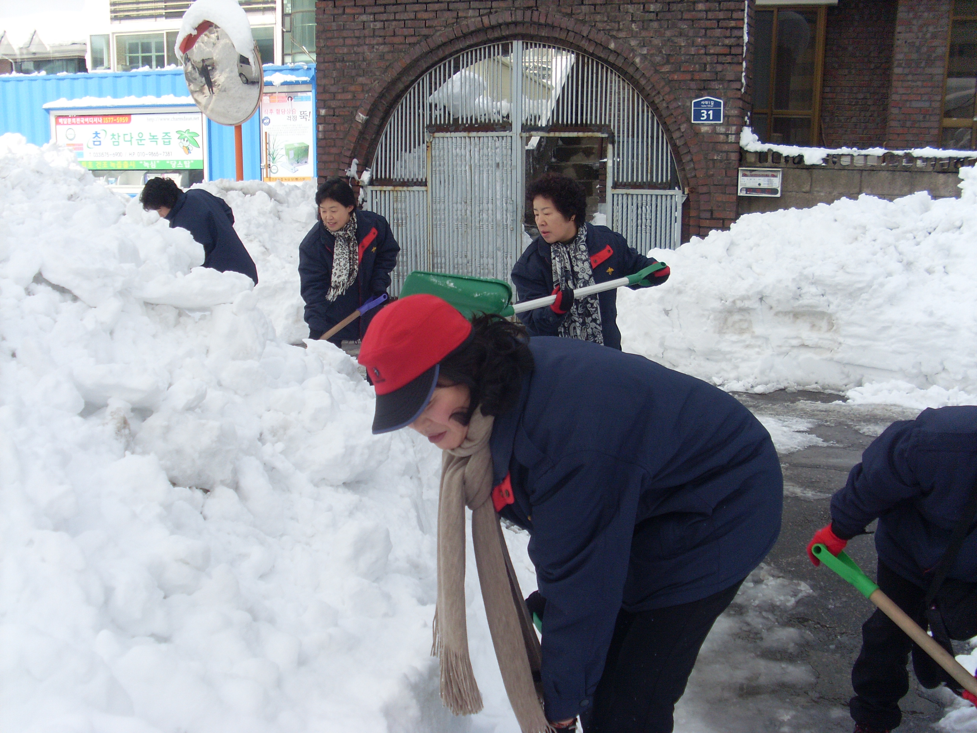 삼척여성대 20여명이 시가지 일대 사람 손길이 닫지 않은곳을 제설작업 실시함