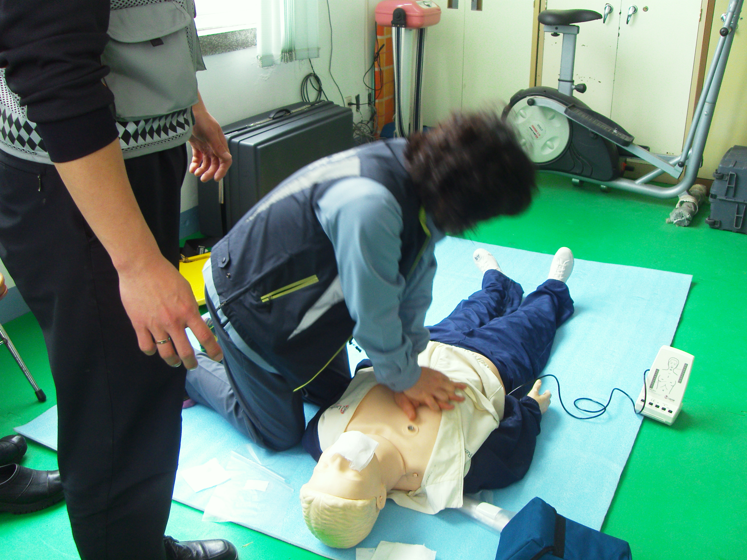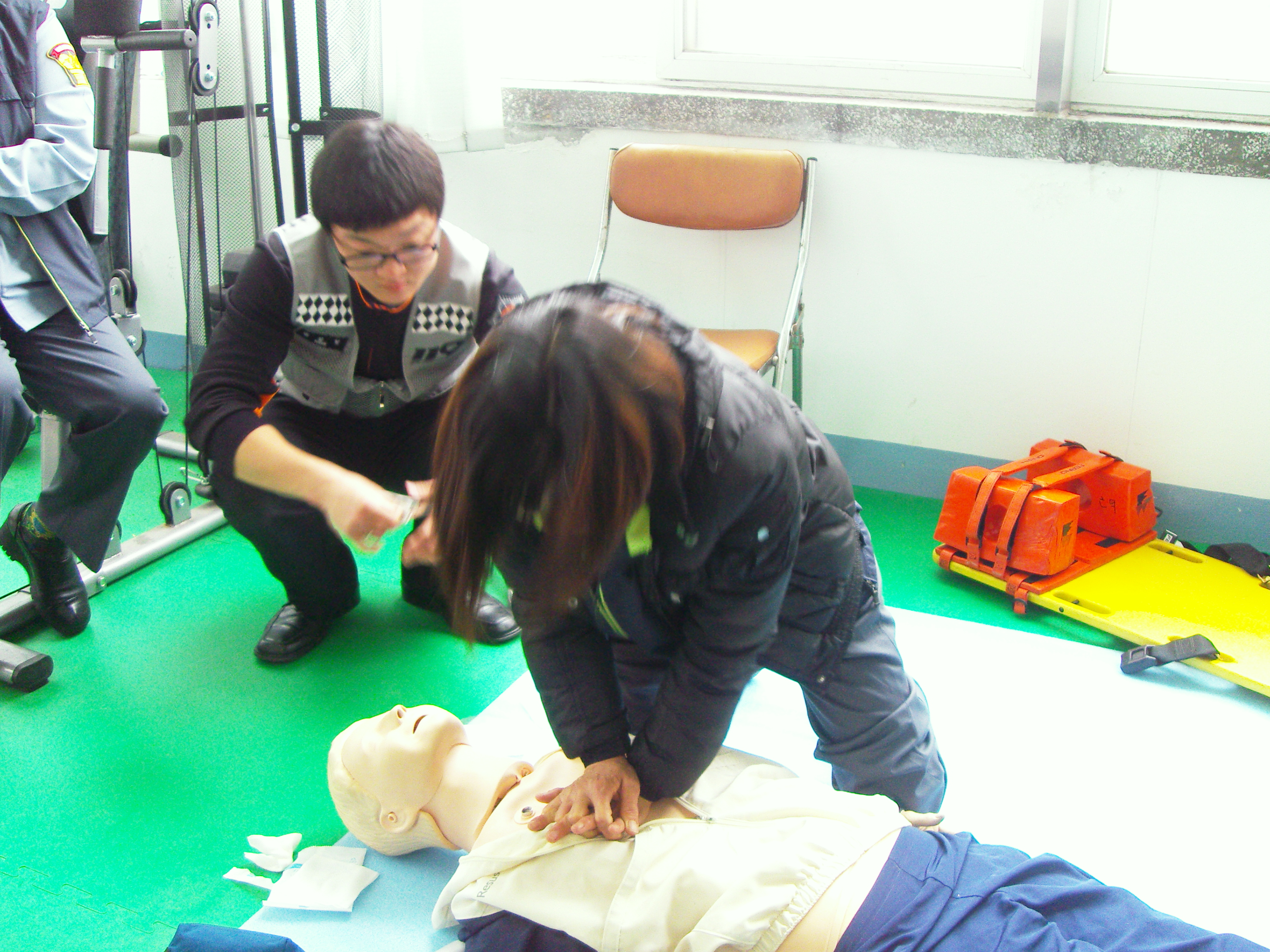 사직 센타에서 심폐 소생술 및 응급 처치 교육함