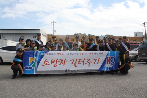삼척여성의용소방대(대장 최금순)에서는 9.7. 15:00 김상철 소방서장님과 함께 중앙시장에서 소방차 길터주기, 화재예방 홍보 등 캠페인을 하였습니다.