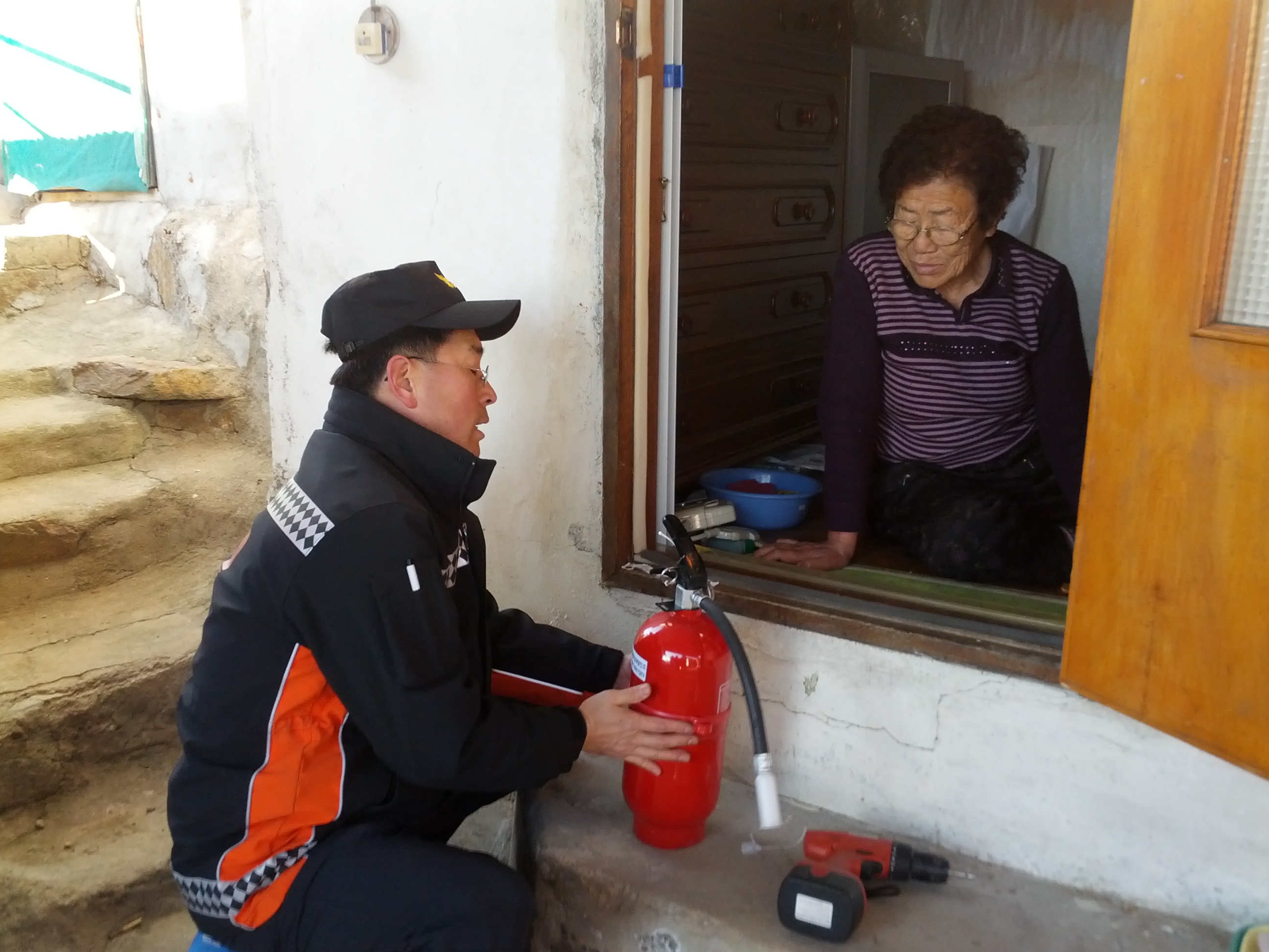 정라동13통 화제없는 마을 불 잡이 달기 및 소화기 전달 봉사 대원10명참석