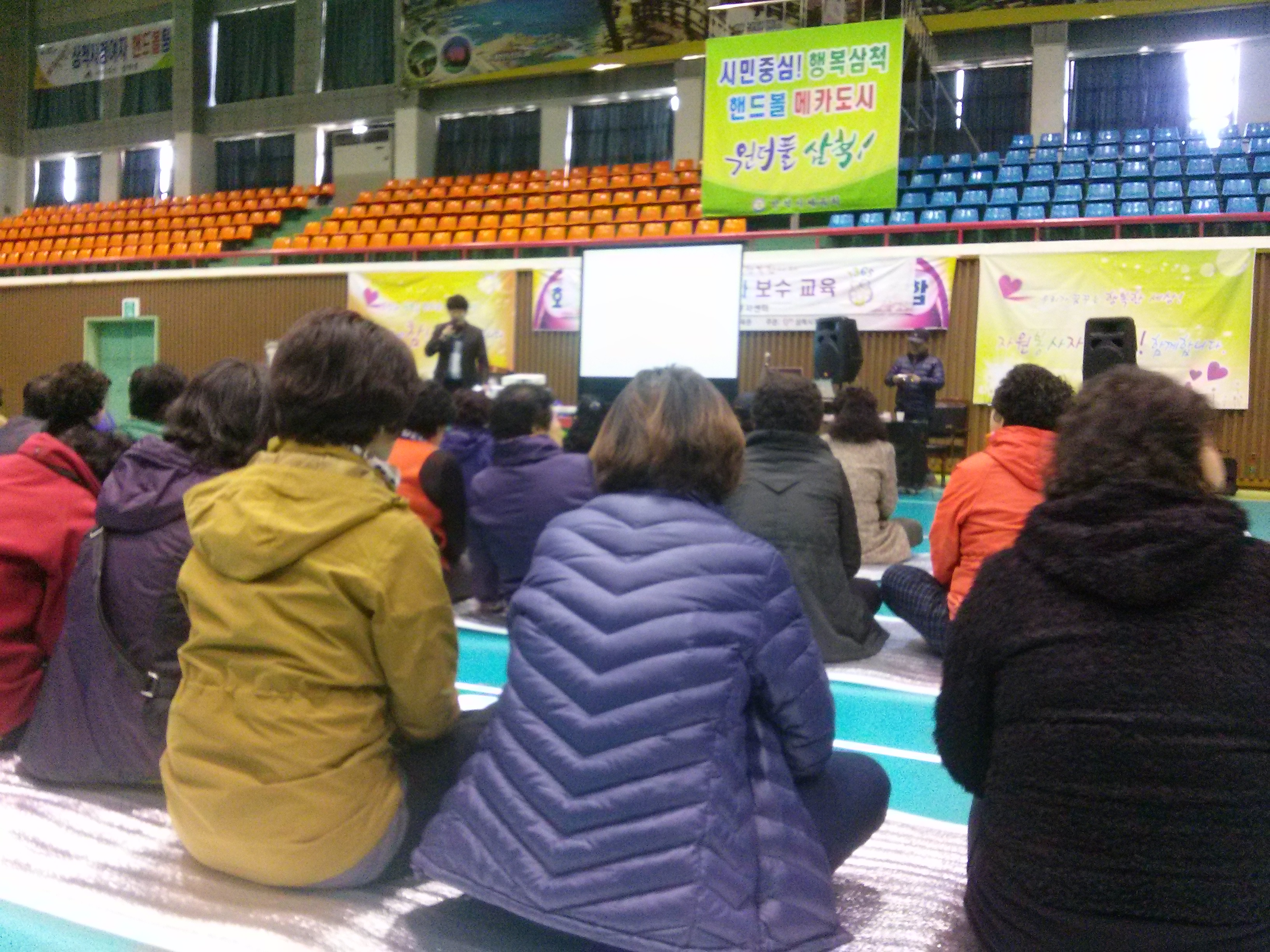 2014. 11. 18 자원봉사센터 소속 봉사자 보수교육 및 단합대회 참가 삼척실내체육관에서 하였습니다.