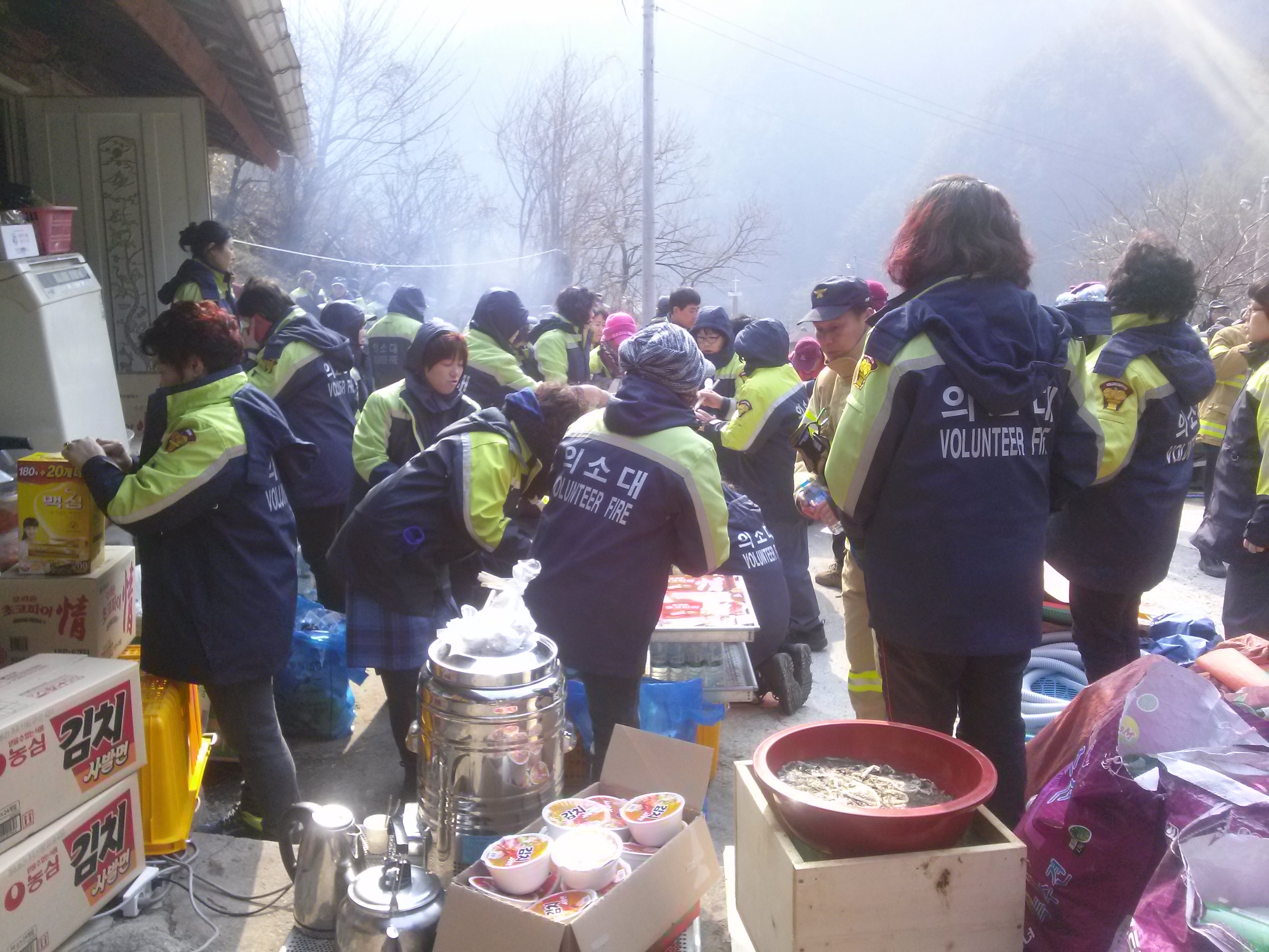 추운날씨에 남,여 대원들 고생많이 하셧습니다. 너무 추워서 등짐펌프가 얼어서 뜨거운 물로 녹여가며