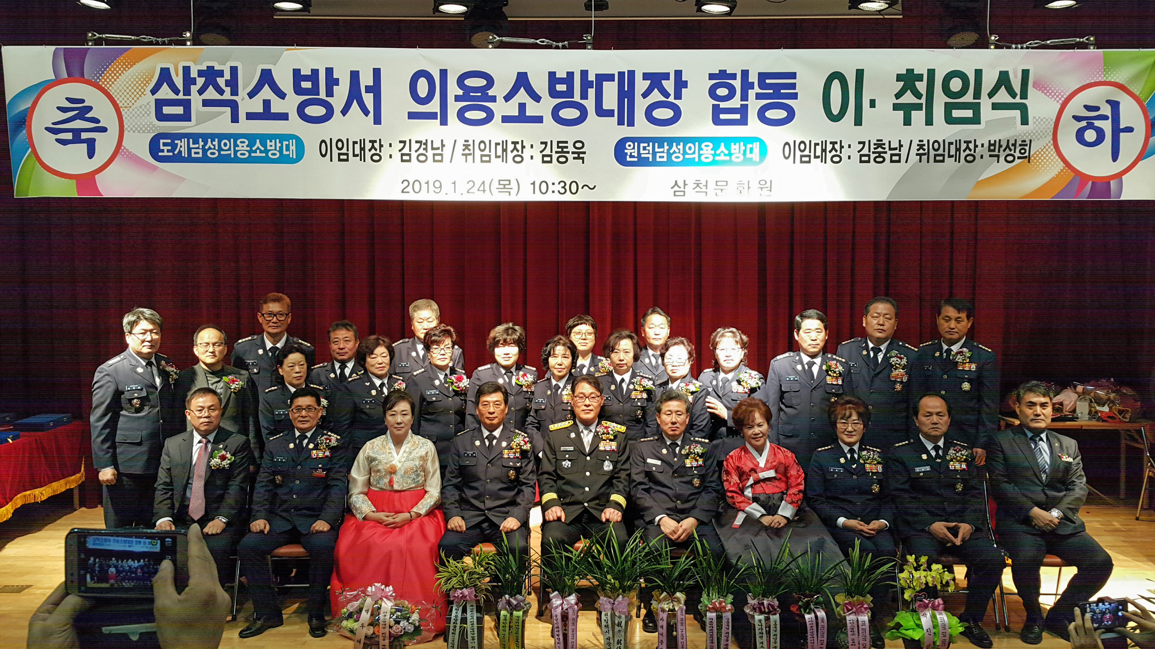 도계남성의용소방대 이임대장:김경남 취임대장:김동욱