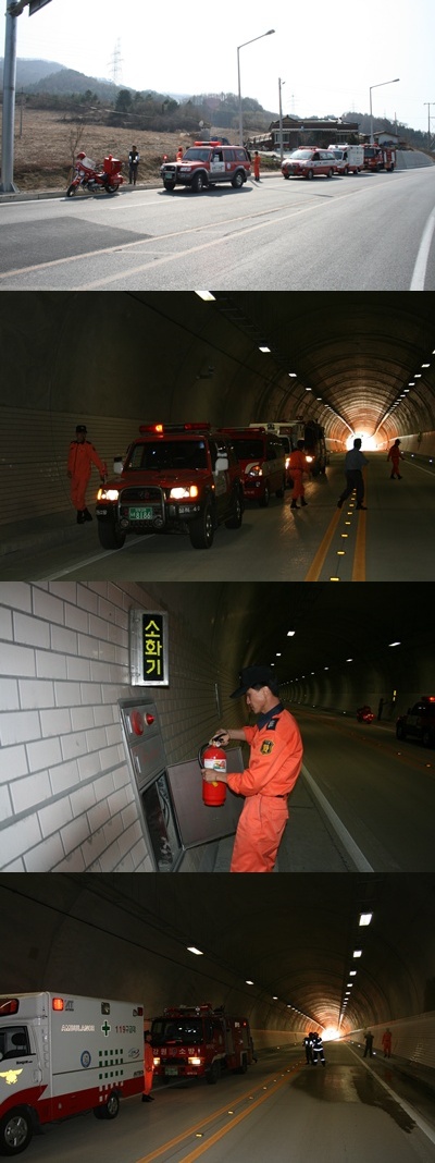 특히, 터널내에서 차량화재가 발생할 가능성에 대비하여 초기 차량통제와 교통사고로 인한 추가 인명피해를 막기위한 대피훈련 등에 중점을 두었다