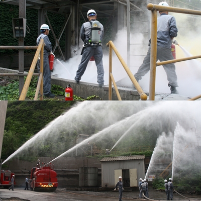 이번 훈련에서는 하절기를 맞아 기온상승으로 위험물 사고에 대비하여 옥외탱크저장소에 화재가 발생한 상황을 부여하여 자위소방대에서 보유하고 있는 소방차 3대와 30여명의 자위소방대원들의 화재진압 대응능력을 평가하고 합동으로 화재진압과 기타 화재취약지점을 확인하는데 중점을 두고 훈련을 실시하였습니다.