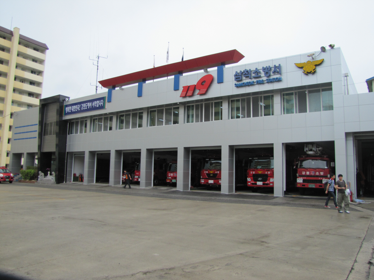 삼척소방서 본서 건물은 건축된지 25년 경과된 노후건물로 지난해 추경예산에서 2억원의 예산을 확보하여 청사 내,외의 시설물 개선 등 지난 5월 20일 착공하여 오늘 준공을 하게 되었다.