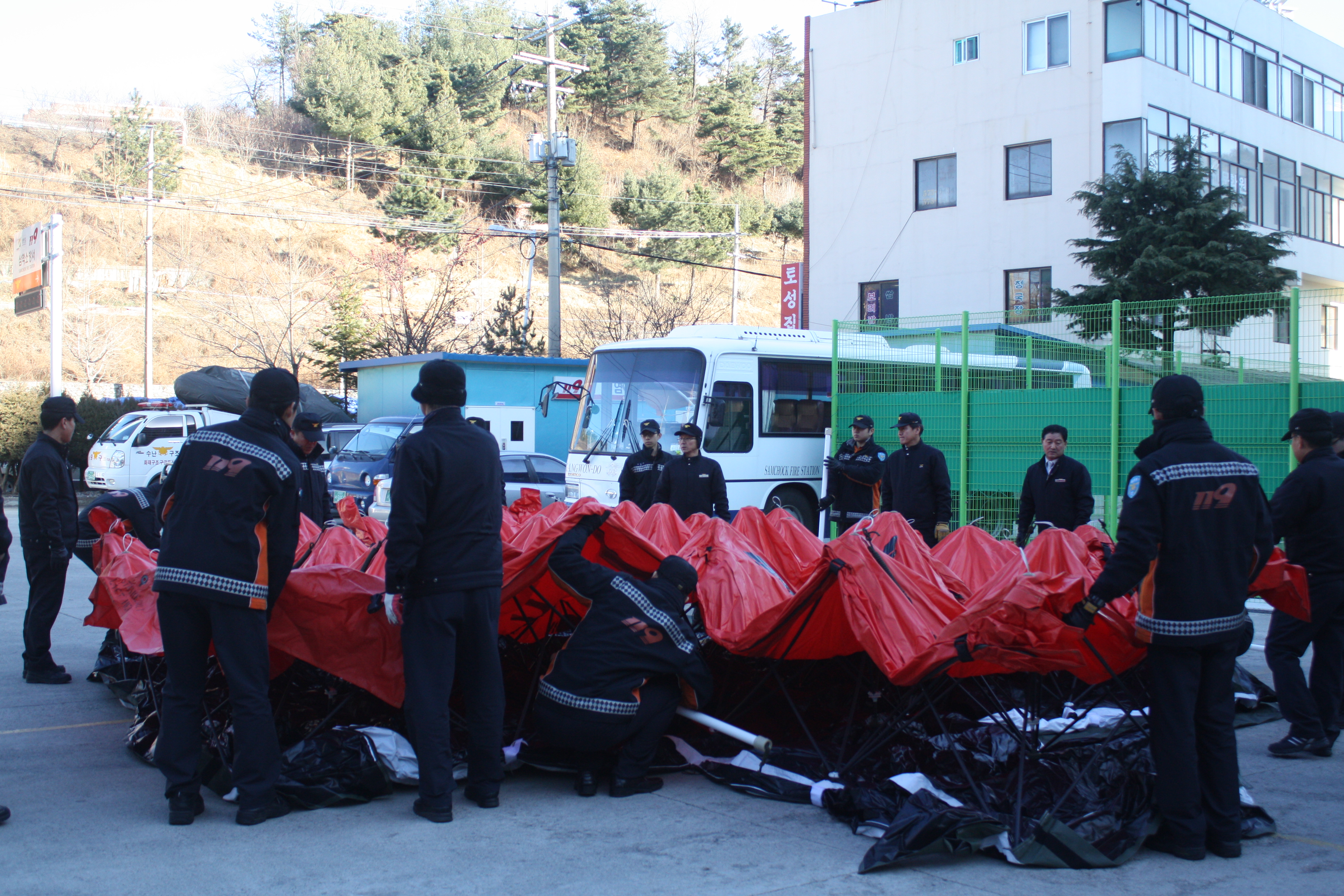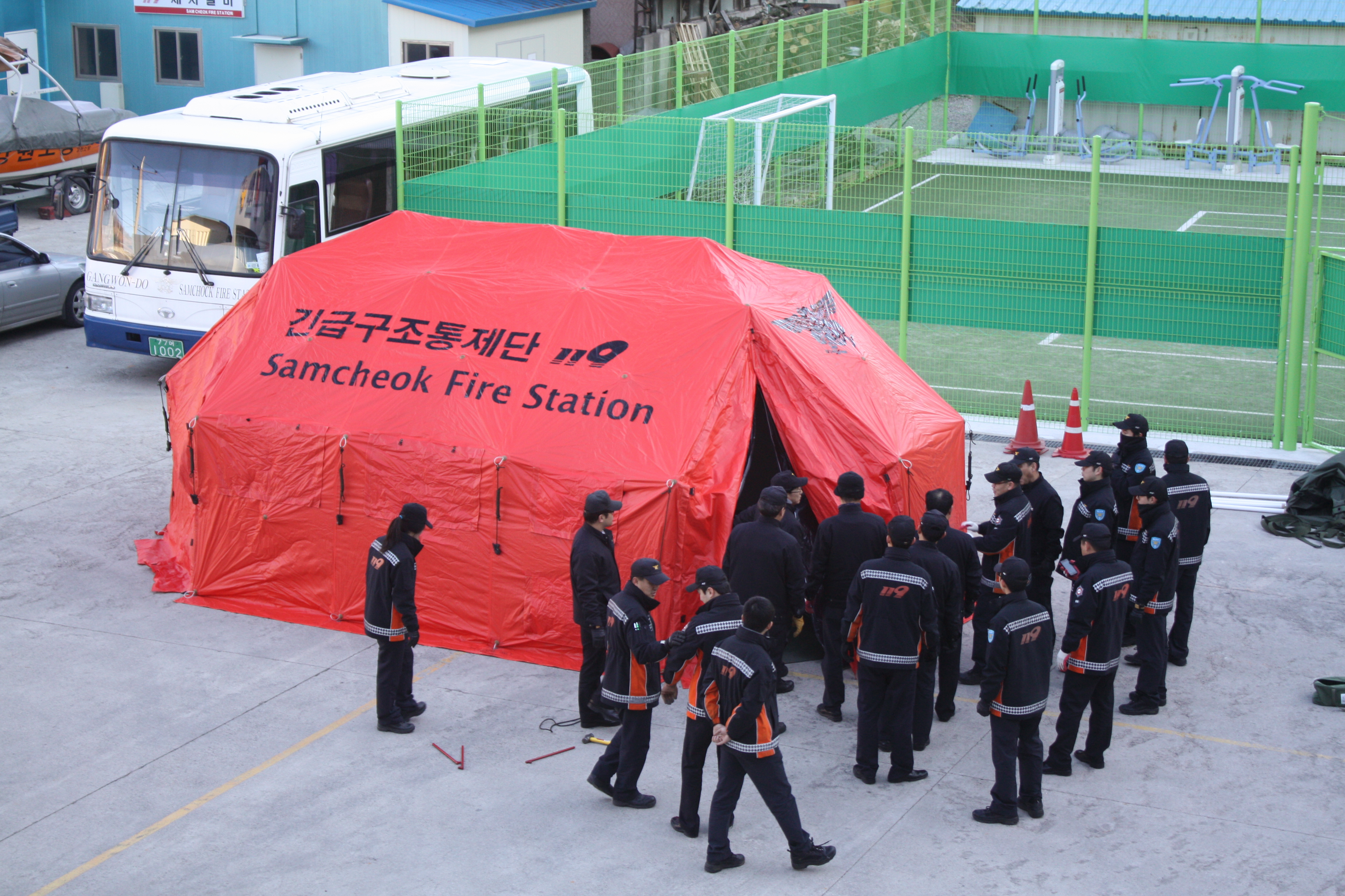 ★ 삼척소방서 (서장 이지만)는 2013년 1월 4일 14시 30분 부터 내근 전직원들과 함께 긴급구조 통제단(현장지휘소) 텐트 설치 연습을 실시하였다.