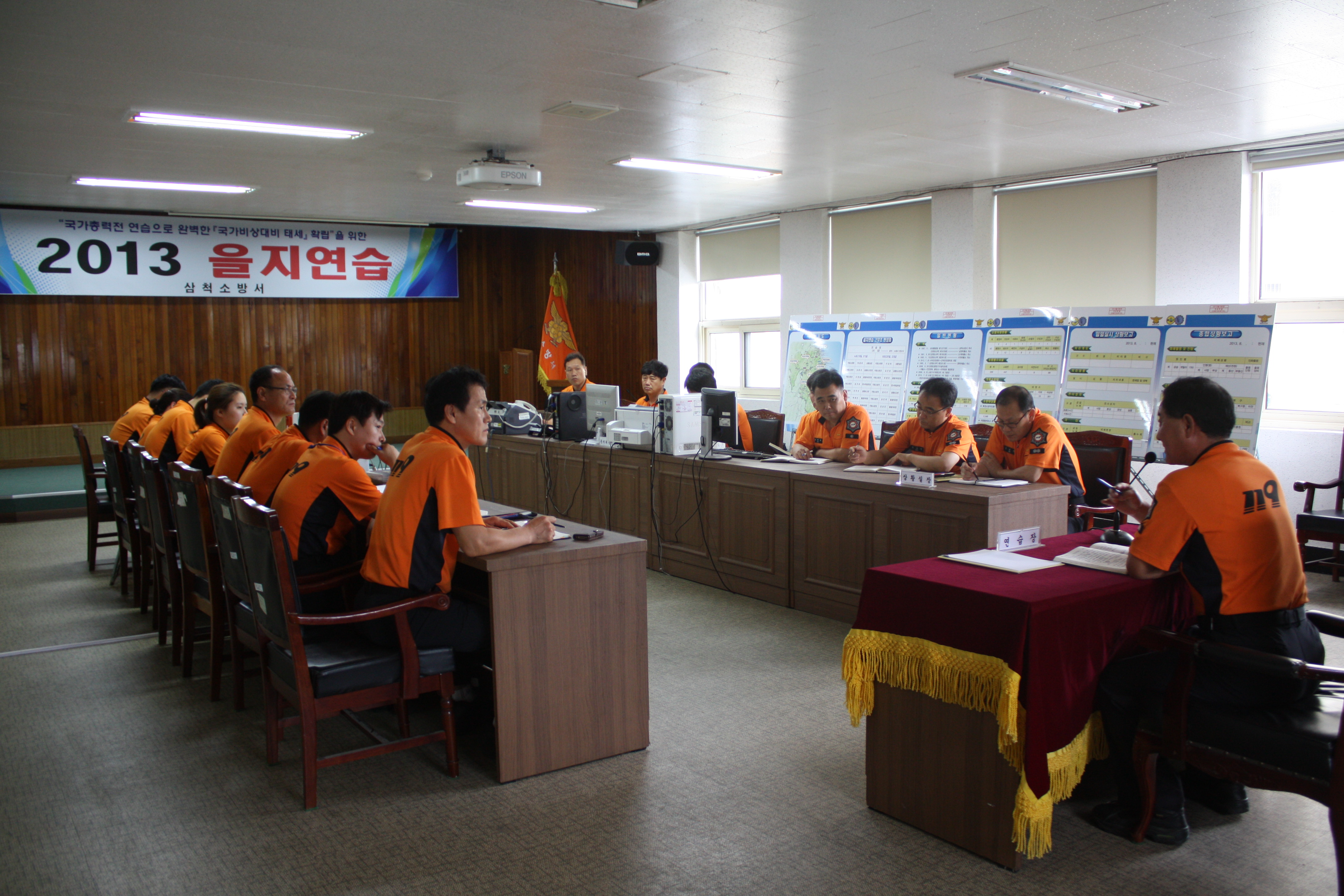 2013년 8월 19일부터 8월 22일까지 소방서 본관 대회의실에서 실시하는 을지연습을 대비하여 훈련에 참가하는 직원들을 대상으로 비상소집을 실시하여 준비사항 및 임무부여 등에 관한 교육을 실시했다.