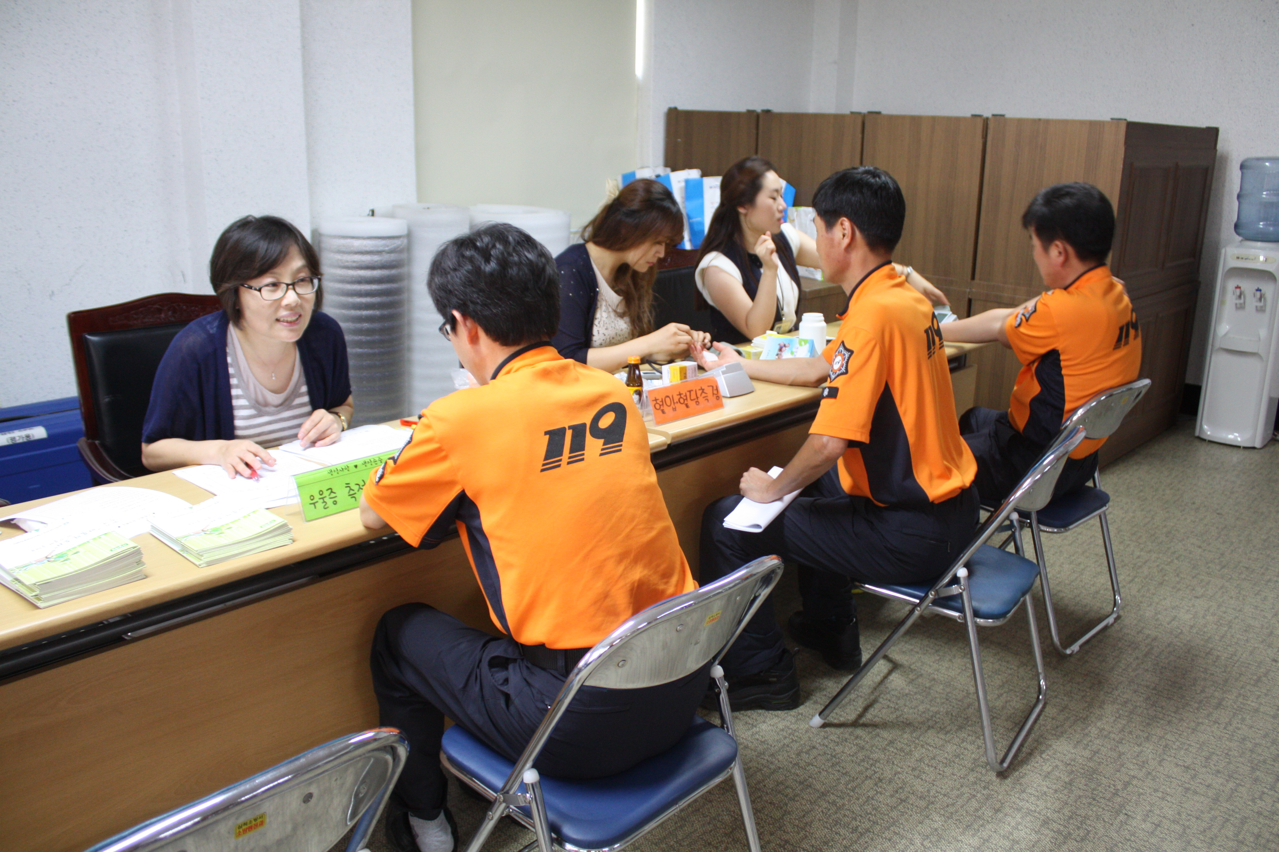 이번 교육은 삼척 보건소 건강매니저 김효진씨를 초청하여 고혈압 증상 및 합병증 진단방법에 관하여 설명을 듣고, 생활습관개선 교육 및 구급대원 고혈압 측정도 실시했다.
