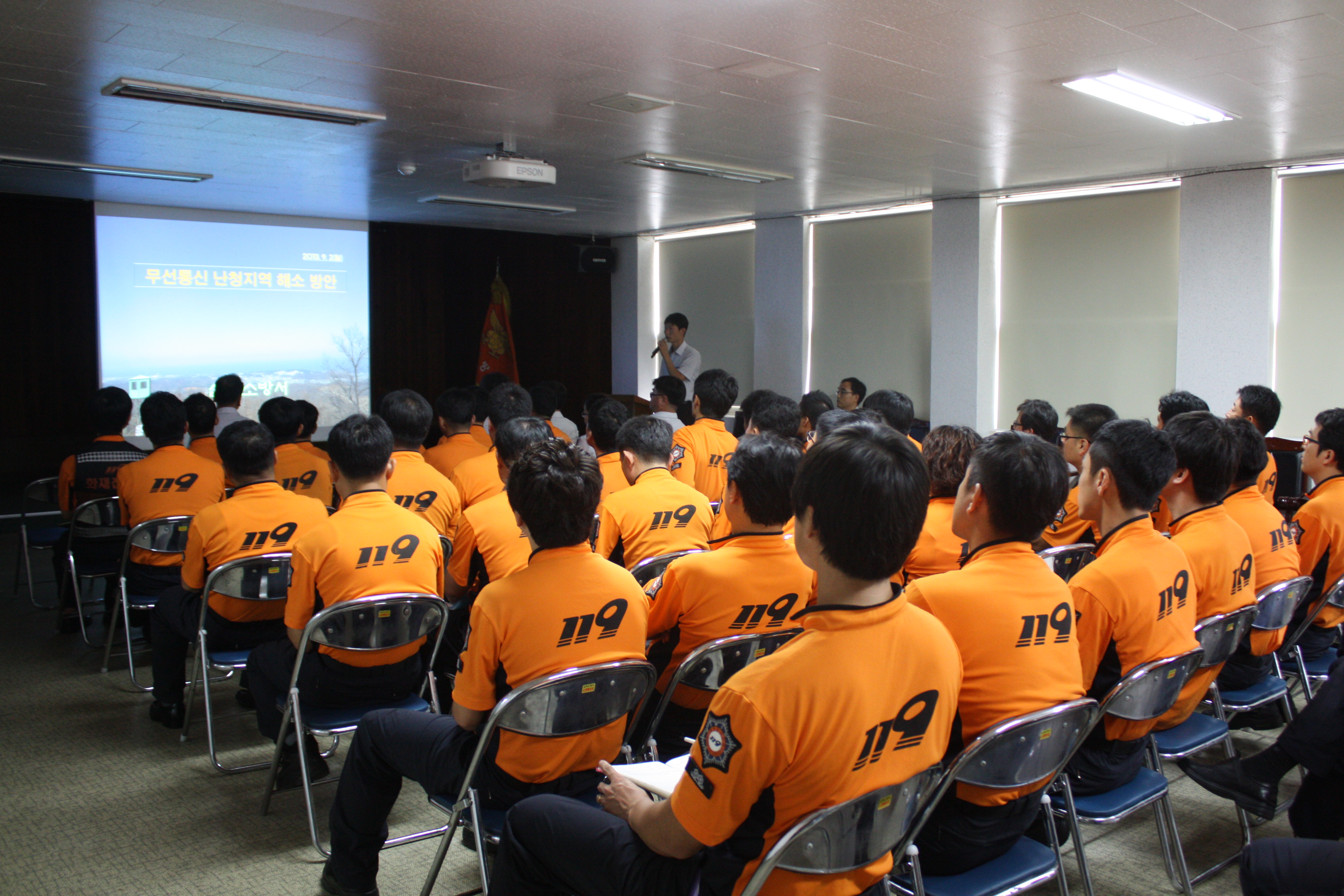 2013년 9월 2일 9시부터 2층 대회의실에서 삼척소방서 전 직원을 대상으로 9월중 정례조회 및 직장교육을 실시하였다.