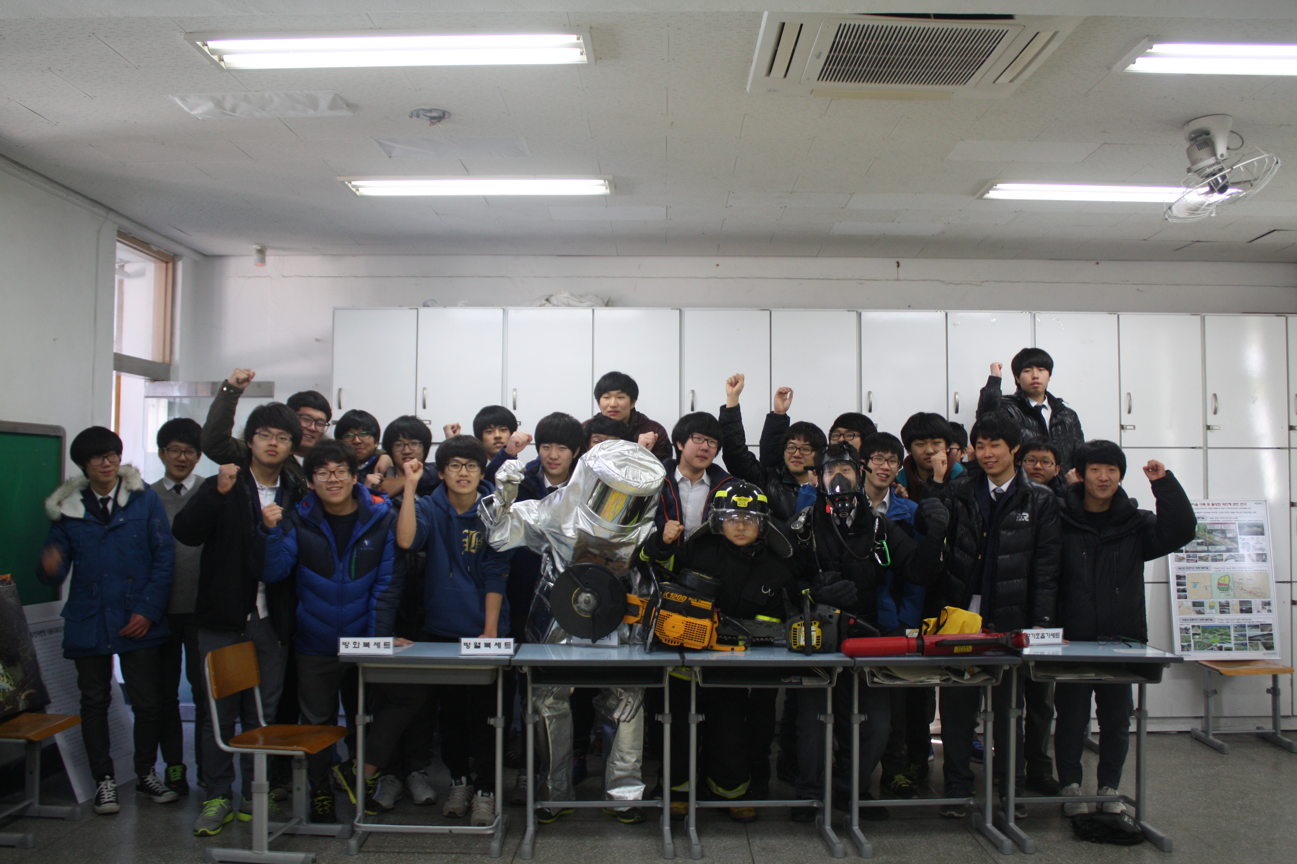 ▲ 삼척소방서는 2013년 12월 24일 삼척고등학교 3학년 2반 축제장을 방문하여 찾아가는 소방안전체험장을