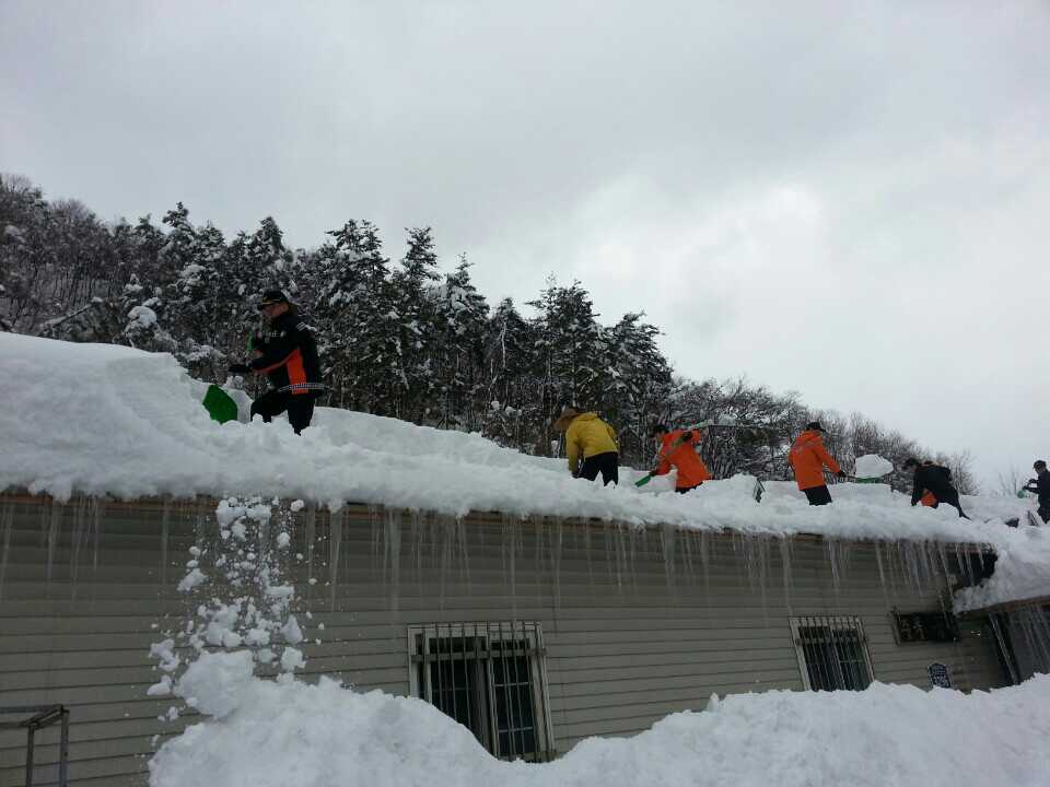 또 14일 13시 미로면 천기리 남부로 김00(남,60세)씨 가설 건축물 지붕 제설 작업을 위하여 이지만 삼척소방서장 및 의용소방대 8명이 출동하여 합동 제설 작업을 실시하였다.