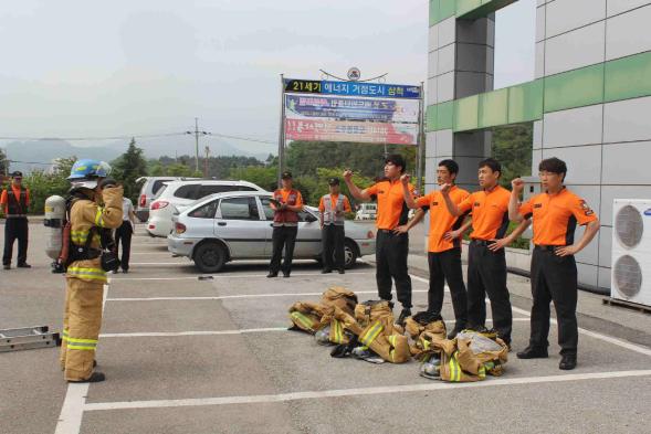 2014년 6월 9일~10일 강원도 소방학교(태백시 동태백로 위치)에서 실시하는“2014년 소방 기술·전술 경연대회”를 대비하여 시연회 및 출정식을 실시하였다.