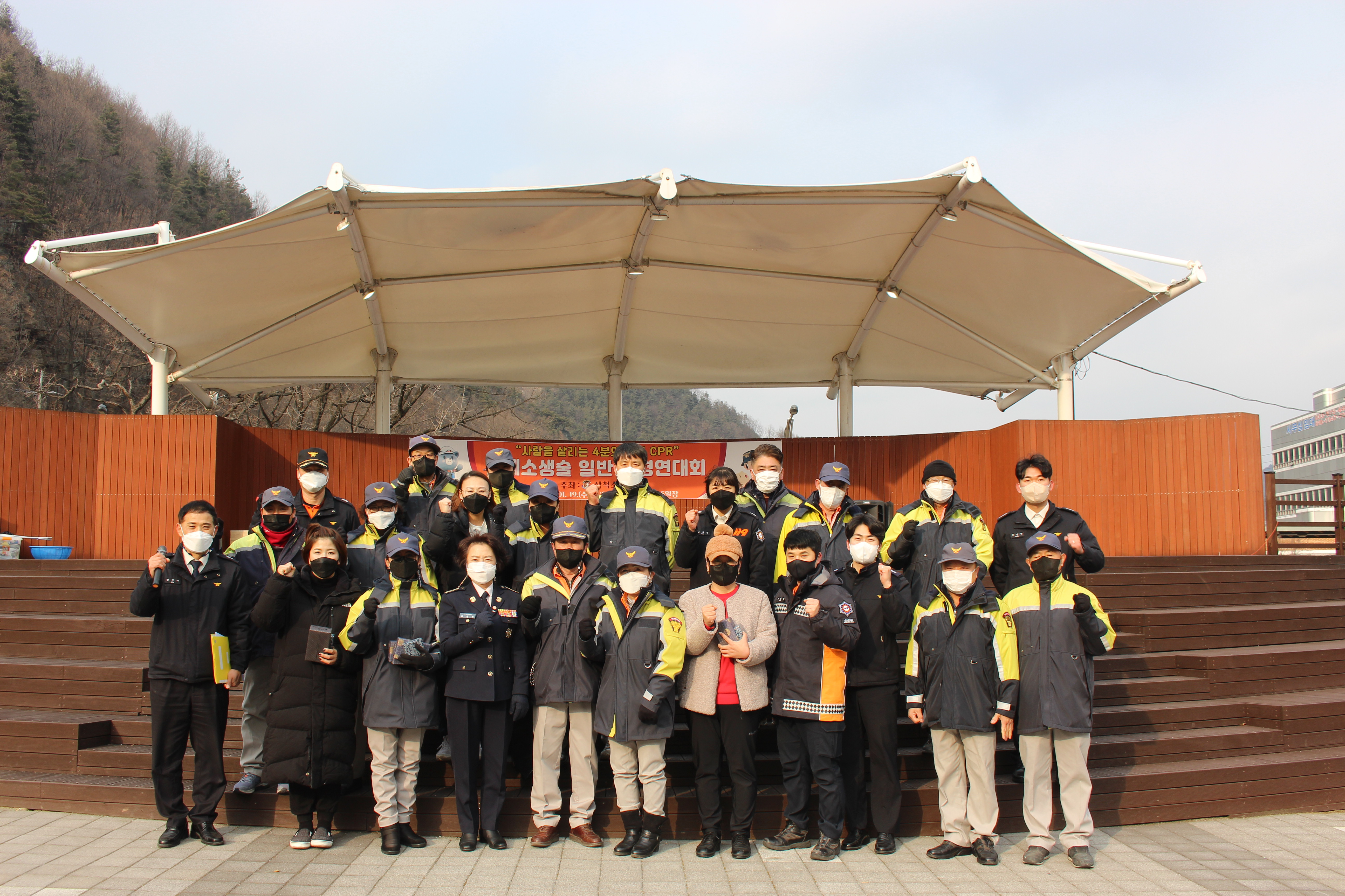 22.1.20.도계 5일장터에서 화재예방캠페인 및 cpr경연대회를 실시했다.