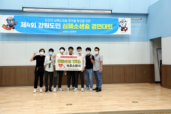 속초소방서(서장 염홍림)는 지난 17일 제4회 강원도민 심폐소생술 경연대회에서 소방서 대표로 출전한 ‘골든타임’ 팀이 장려상을 받았다고 밝혔다.