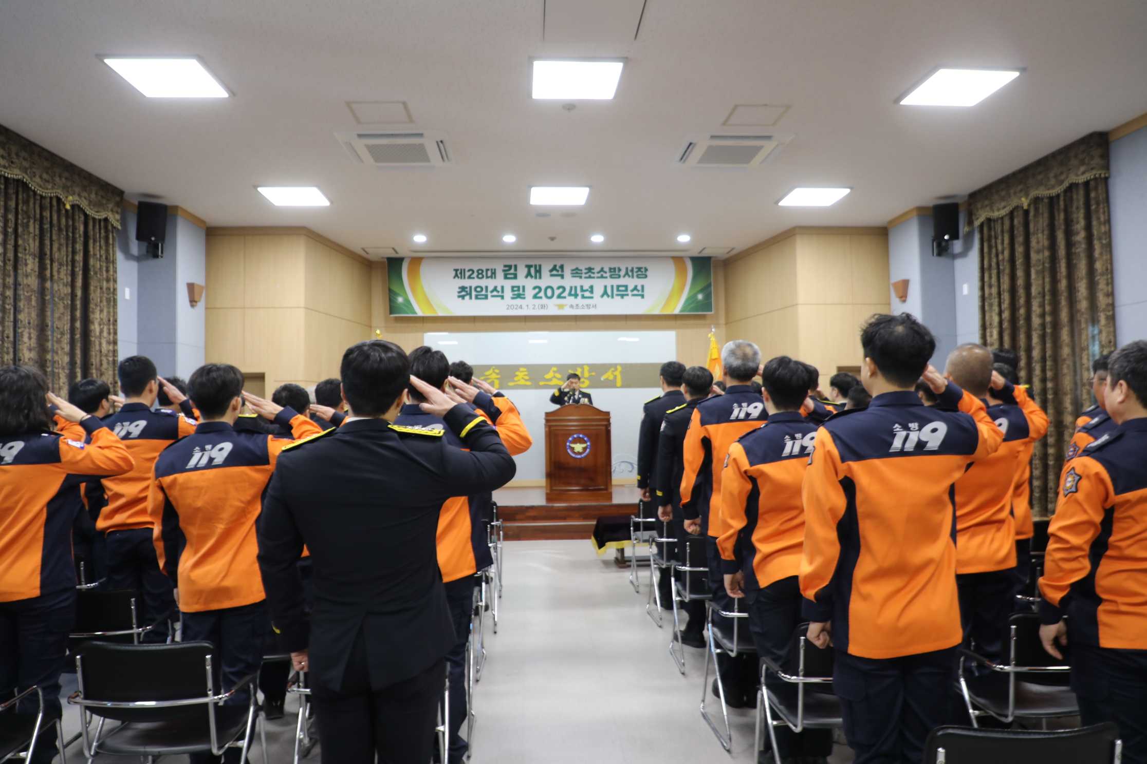 제28대 김재석 속초소방서장 취임식 및 24년 시무식을 실시하였다.