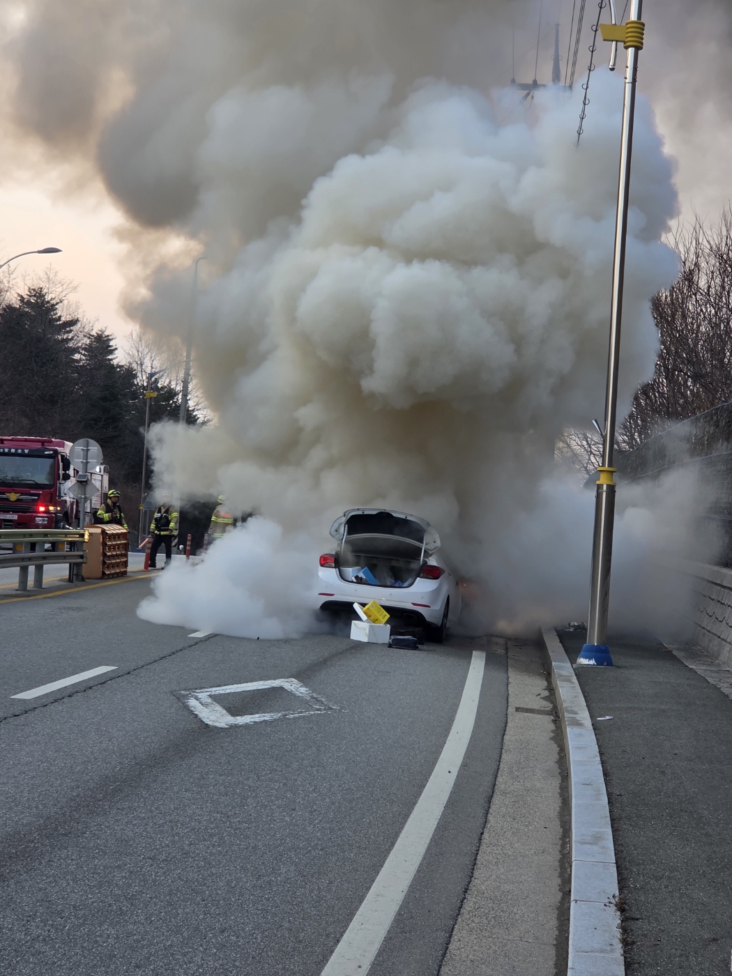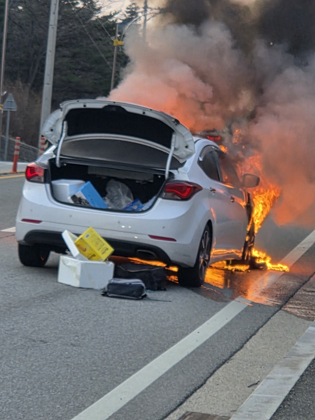 양양톨게이트를 지나 속초로 오는길에 차량화재를 목격했습니다.