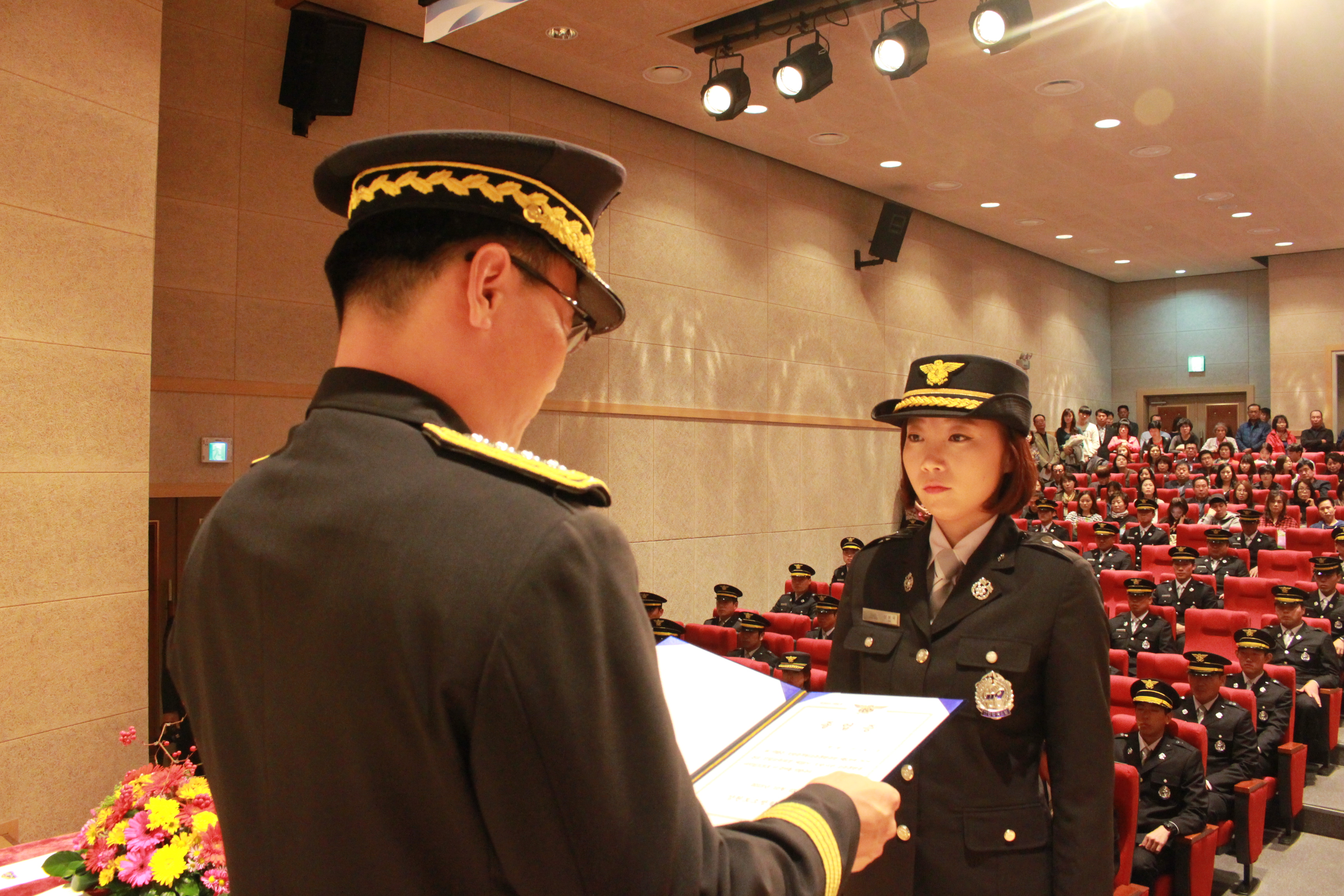【태백=뉴시스】홍춘봉 기자 = 강원도소방학교는 23일 태백시 철암동 소방학교 대강당에서 이강일 도소방본부장, 윤상기 소방학교장 등이 참석한 가운데 '제18기 소방사반' 졸업식을 진행하고 있다. 2015.10.23. (사진=강원도소방학교 제공) photo@newsis.com