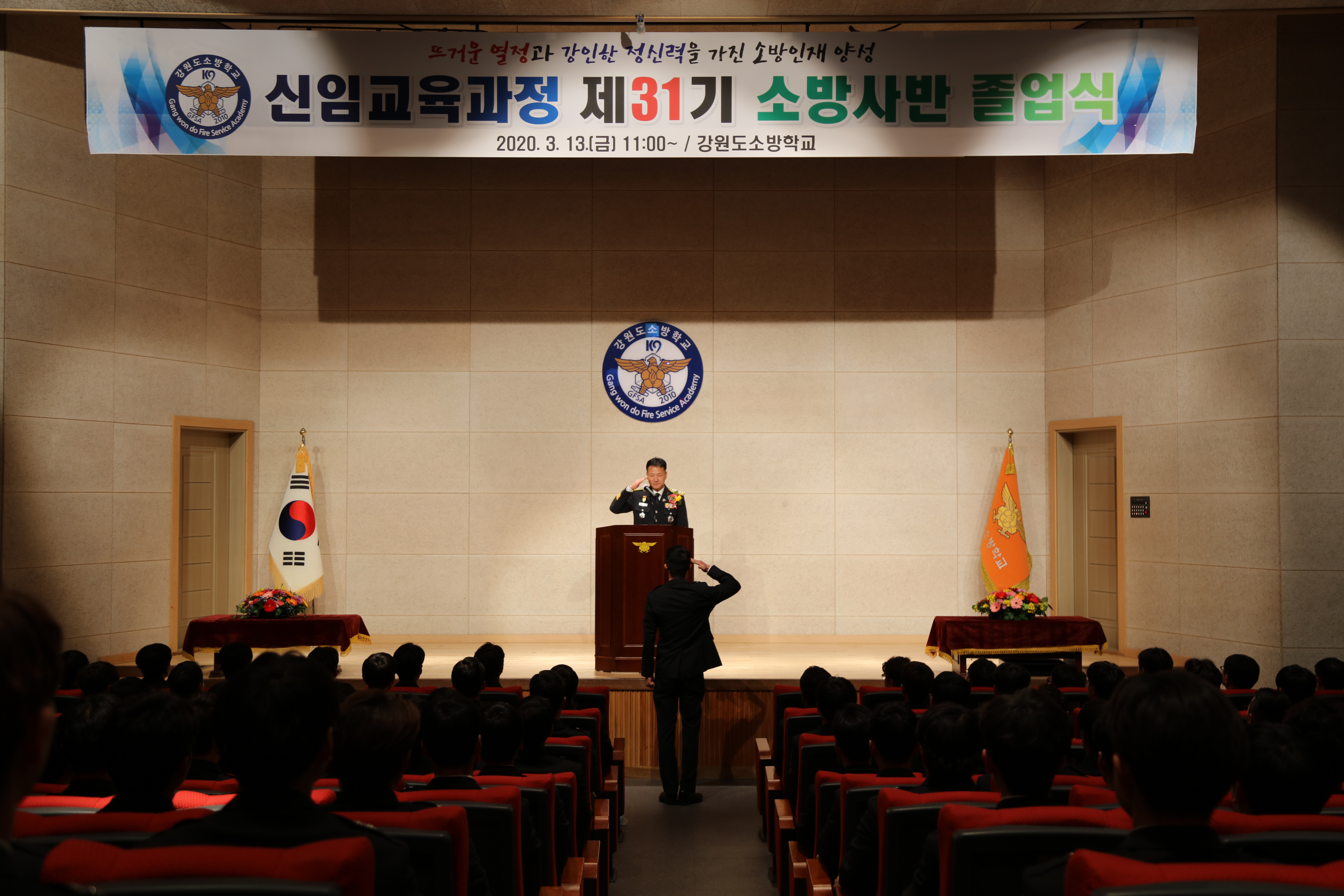 2020.3.13.(금) 강원도소방학교 대강당에서 제31기 신임소방사반 졸업식이 거행되었습니다.