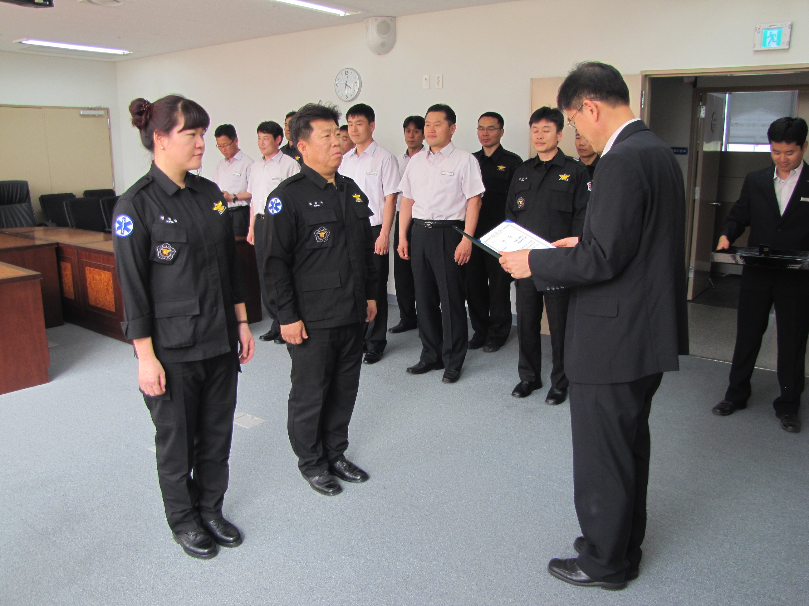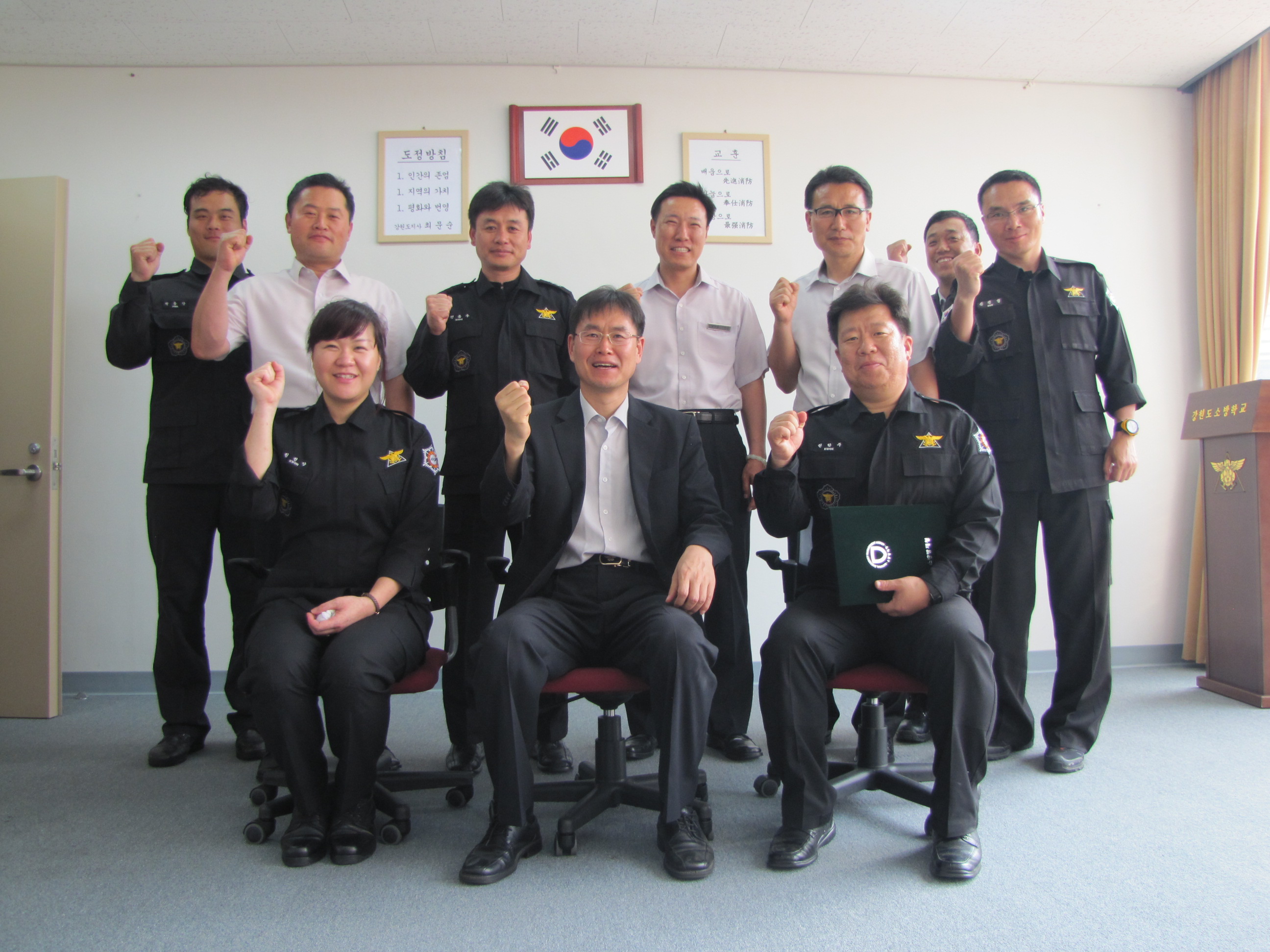 정병도 강원도소방학교장은 24일 오후 4시 소방학교 소회의실에서 지난 23일 중앙소방학교에서 열린 제18회 소방공무원 교육훈련 경연대회 강의분야에 참가하여 장려상을 입상한 교육운영과 소방위 권학주 교수에게 소방방재청장 상장과 부상(금배지)을 전수했다.