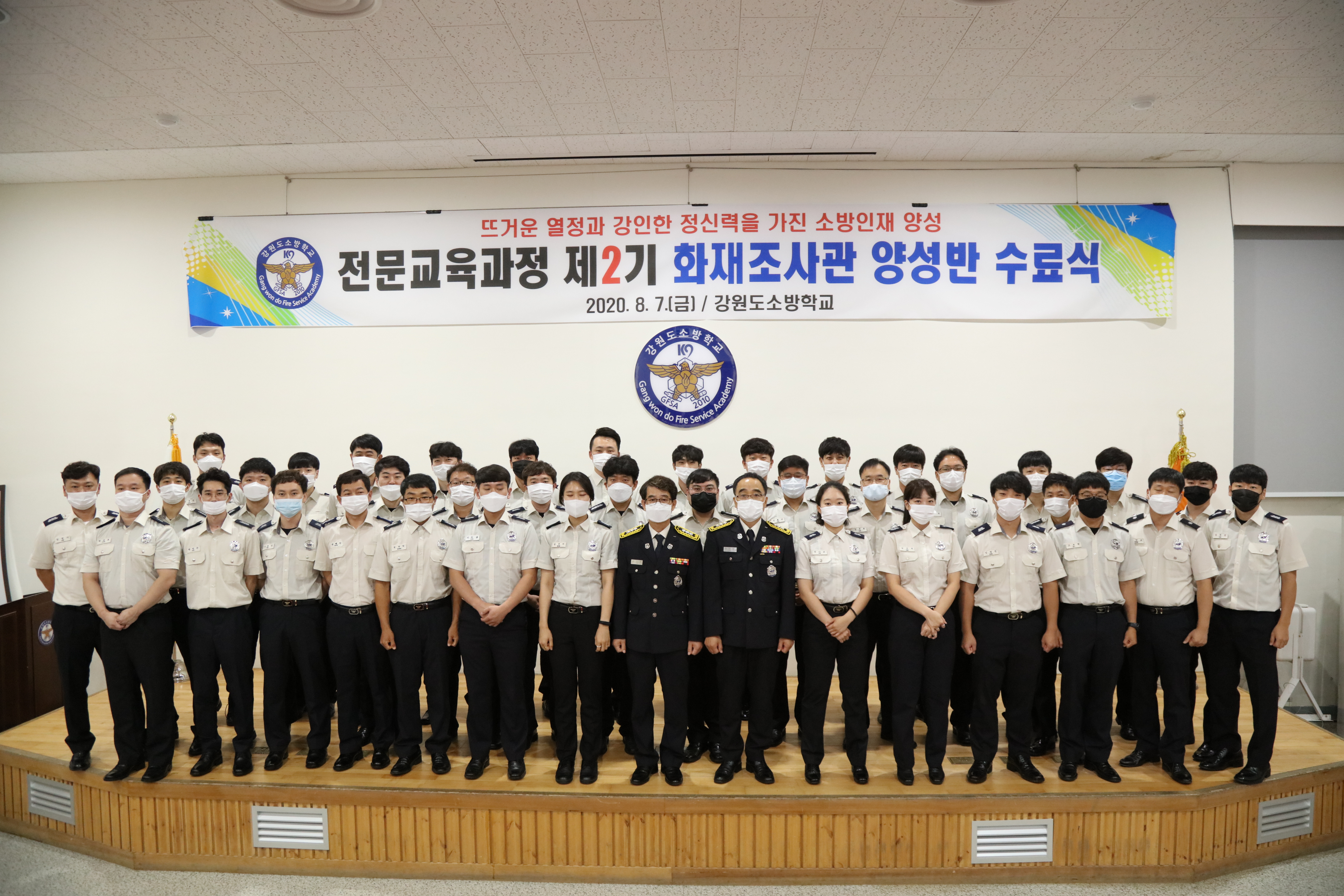 강원도소방학교(학교장 박태원)는 2020년 8월 7일 금요일 오전 11시 교내 소강당에서 전문교육과정 제2기 화재조사관 양성반에 대한 수료식 행사를 개최했다.