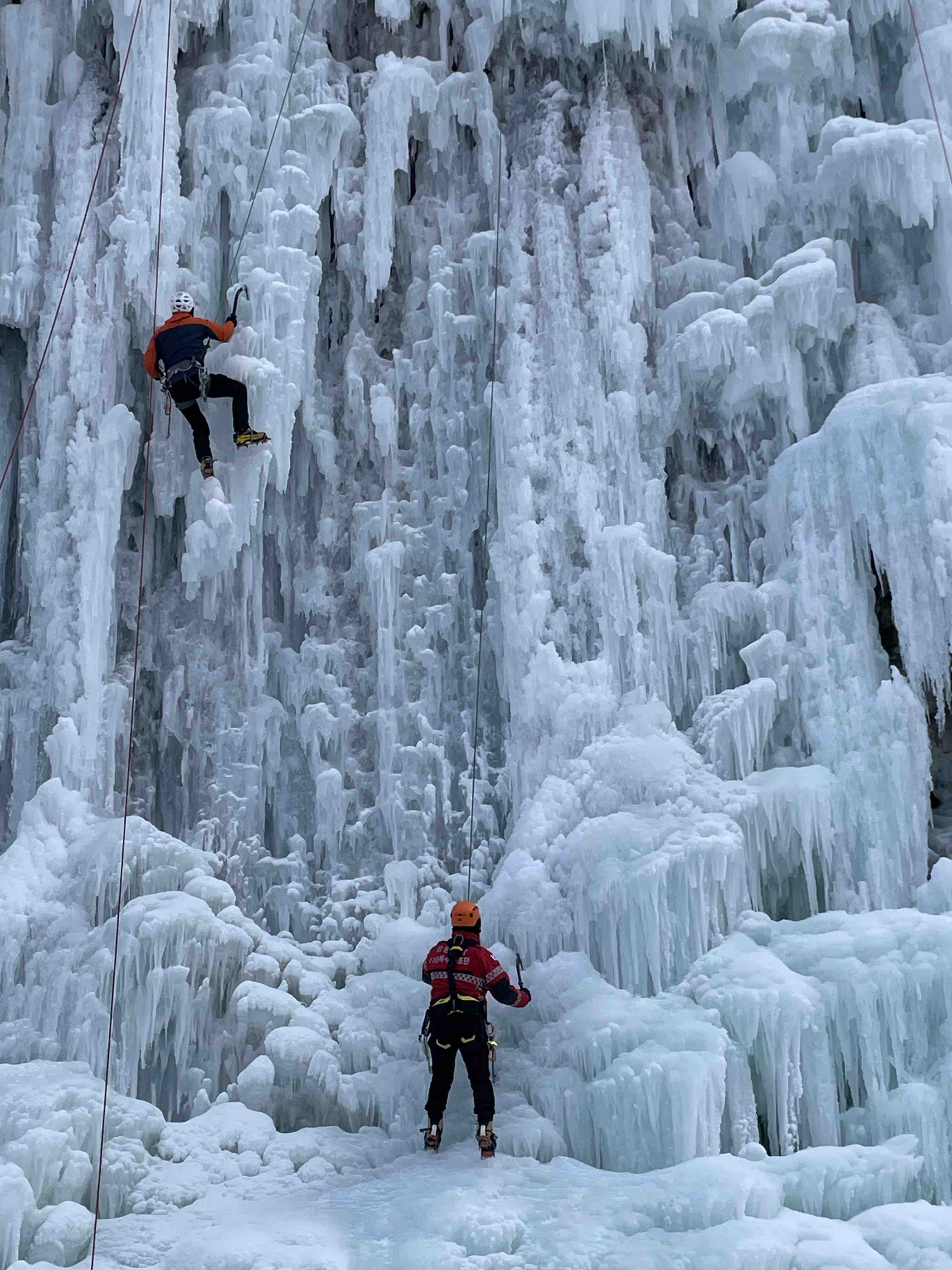 강원119특수대응단, 빙벽 위 추락사고 대비 고난도 구조 훈련 전개
