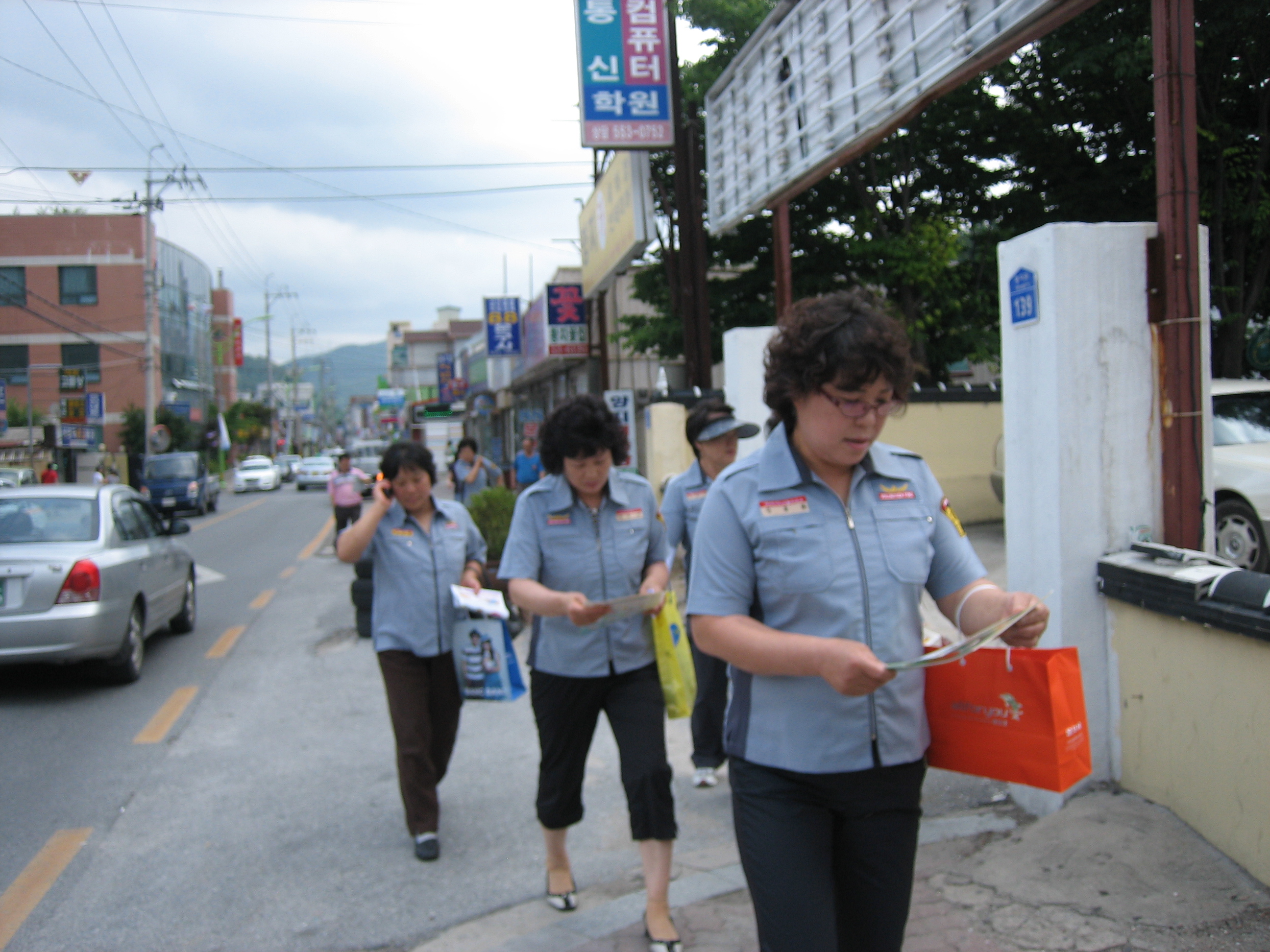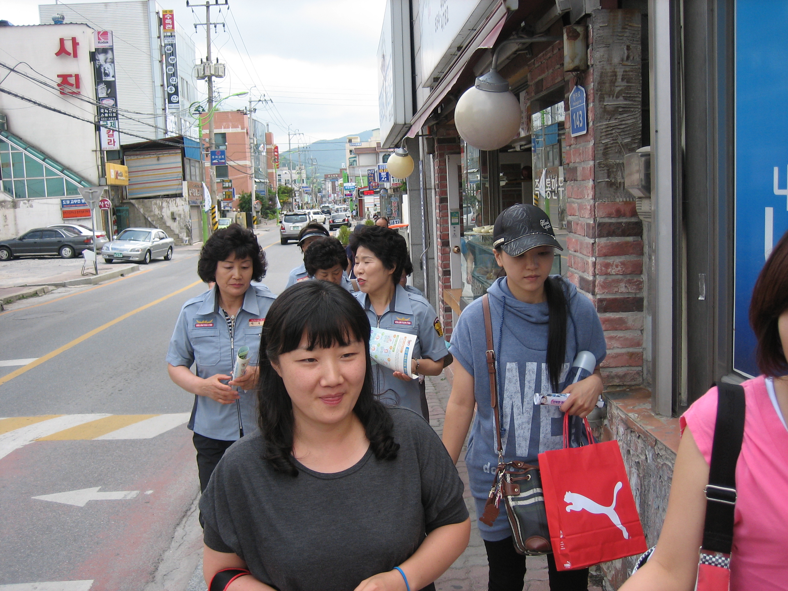 정기교육을 마치고 불조심 및 소방차 길 터주기 캠페인을 시내주변에서 실시하였다.