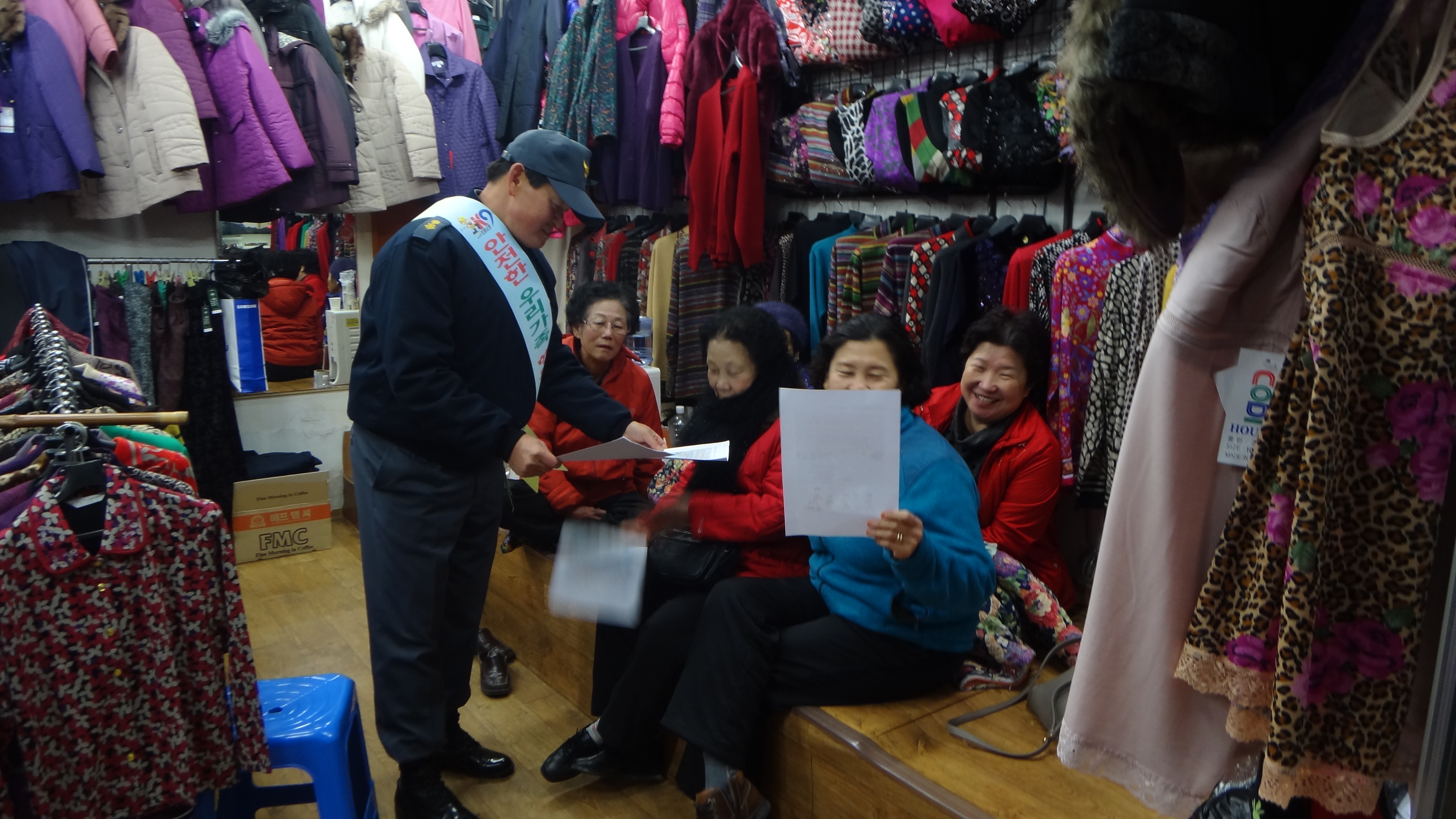 안전요원들과 소방서직원과 남녀의용소방대원들과의