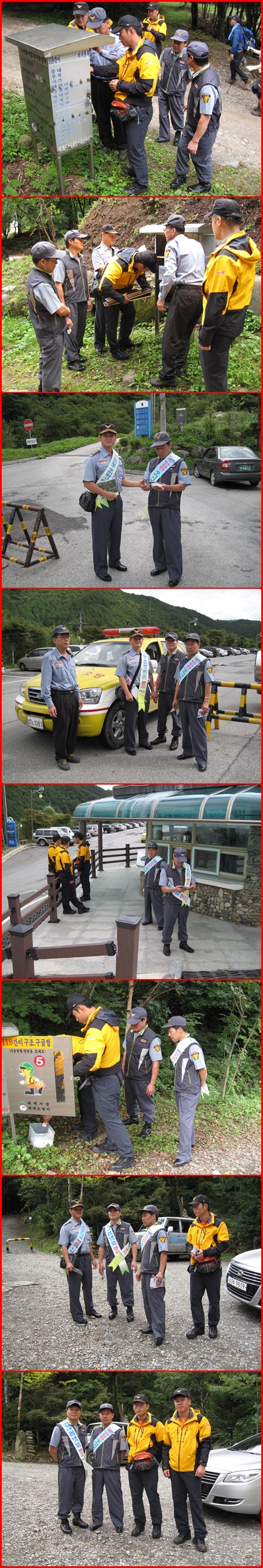 서직원과함께 당골 , 백단사 . 유일사 등산목 길목에 배치