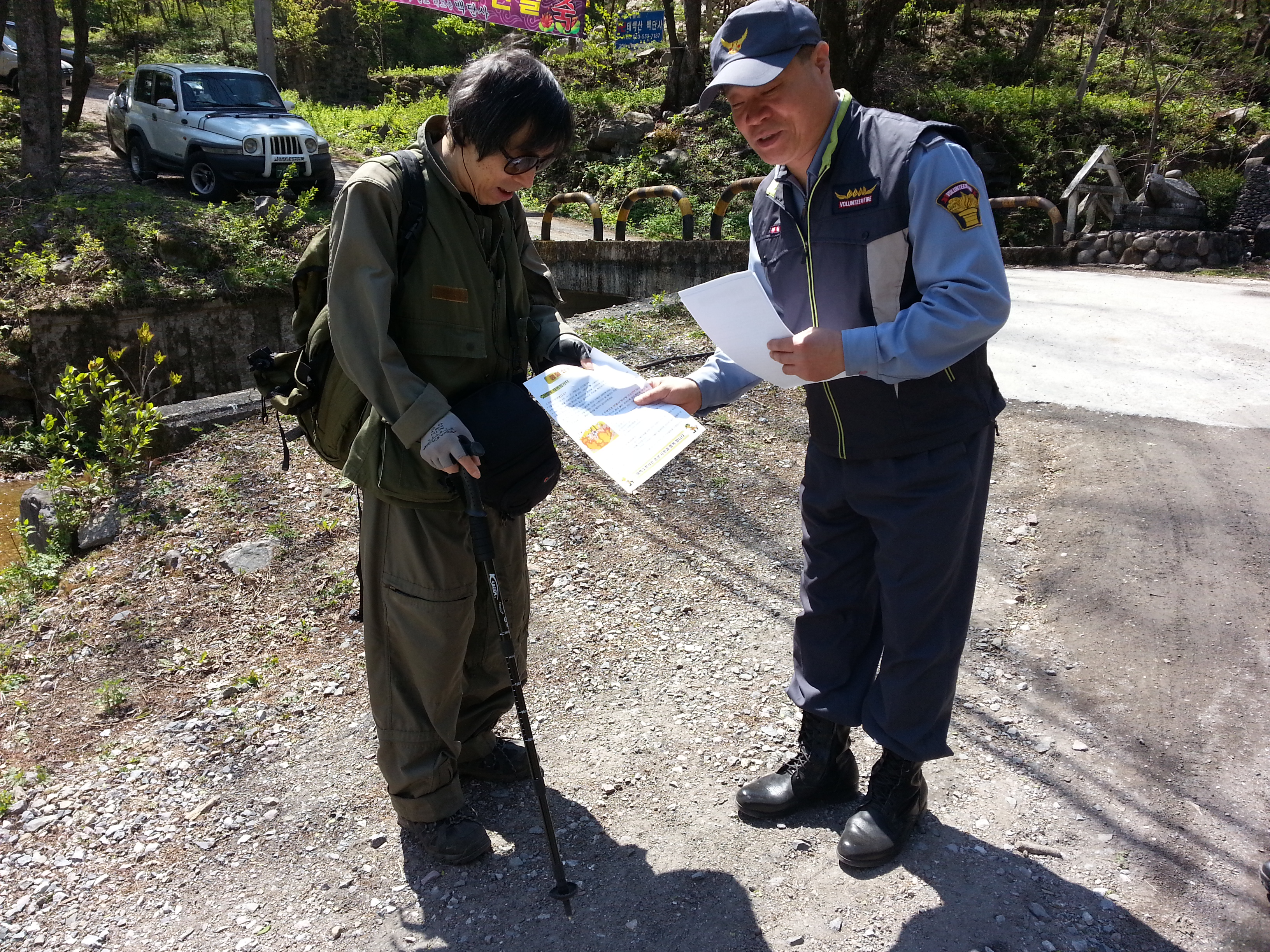 4인 1조로하여 순찰 산불예방 전단지 배포