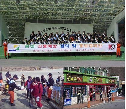 태백소방서(서장 정승진)는 21일 건조한 봄철을 맞아 직원 및 의용소방대원 120명이 태백산 도립공원 당골광장 및 유일사 주변에서 등산객을 대상으로 산불예방 캠페인을 실시하였습니다.