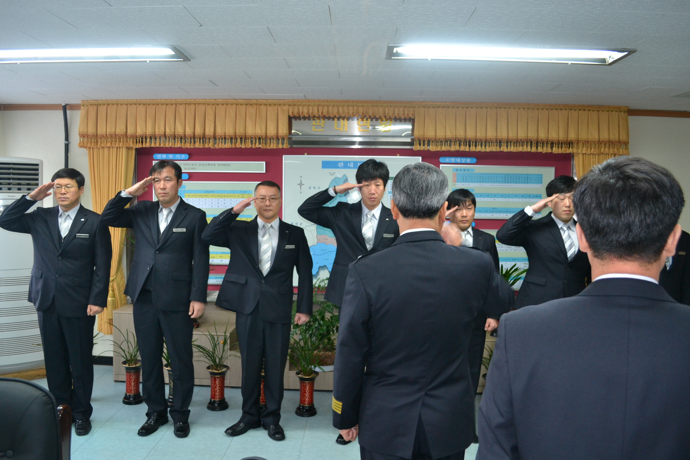 서장실에서 전입자 포함 7명 대한 인사발령자 신고식을 가졌습니다.